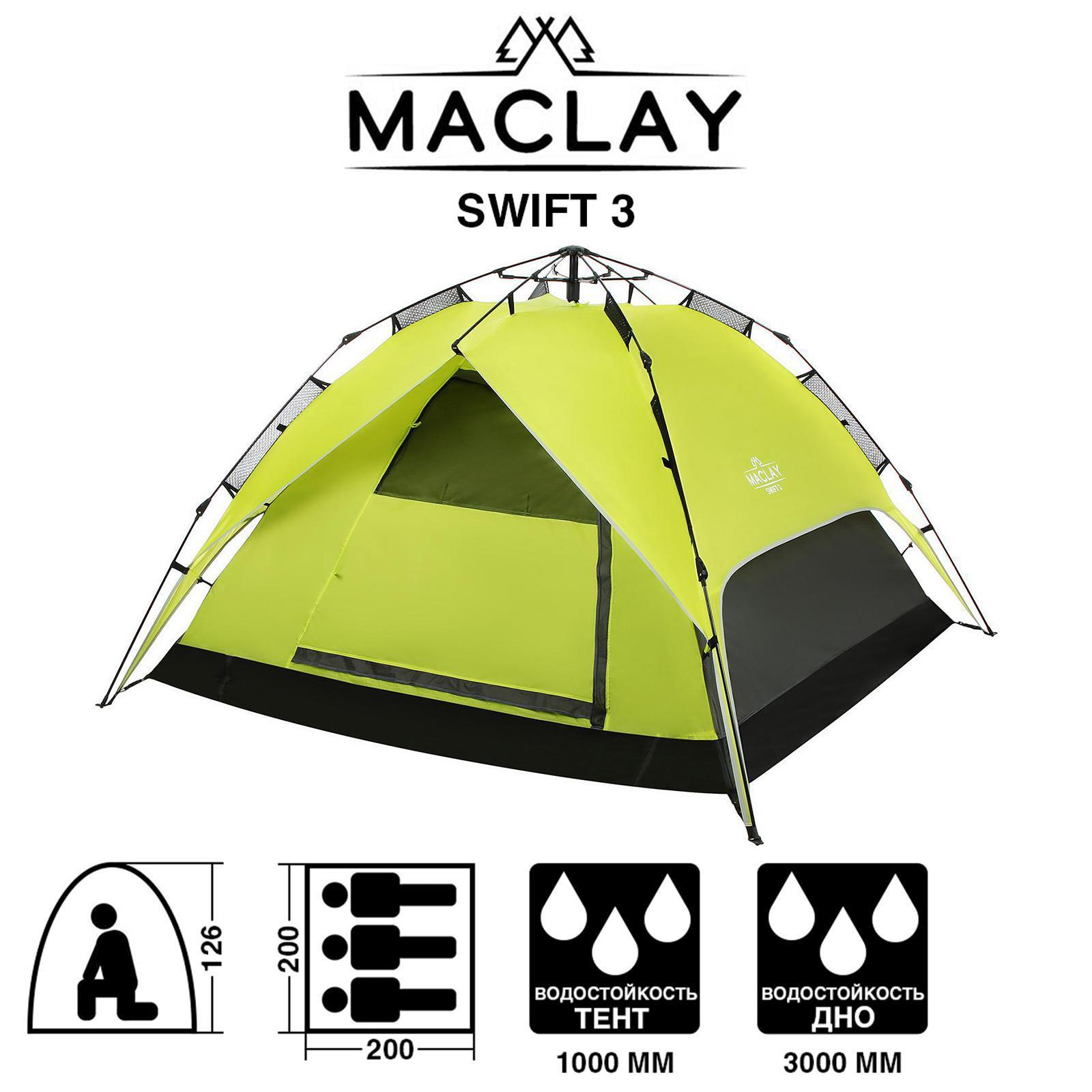 Палатка-автомат туристическая SWIFT 3, размер 200 х 200 х 126 см, 3-местная, однослойная 5311054