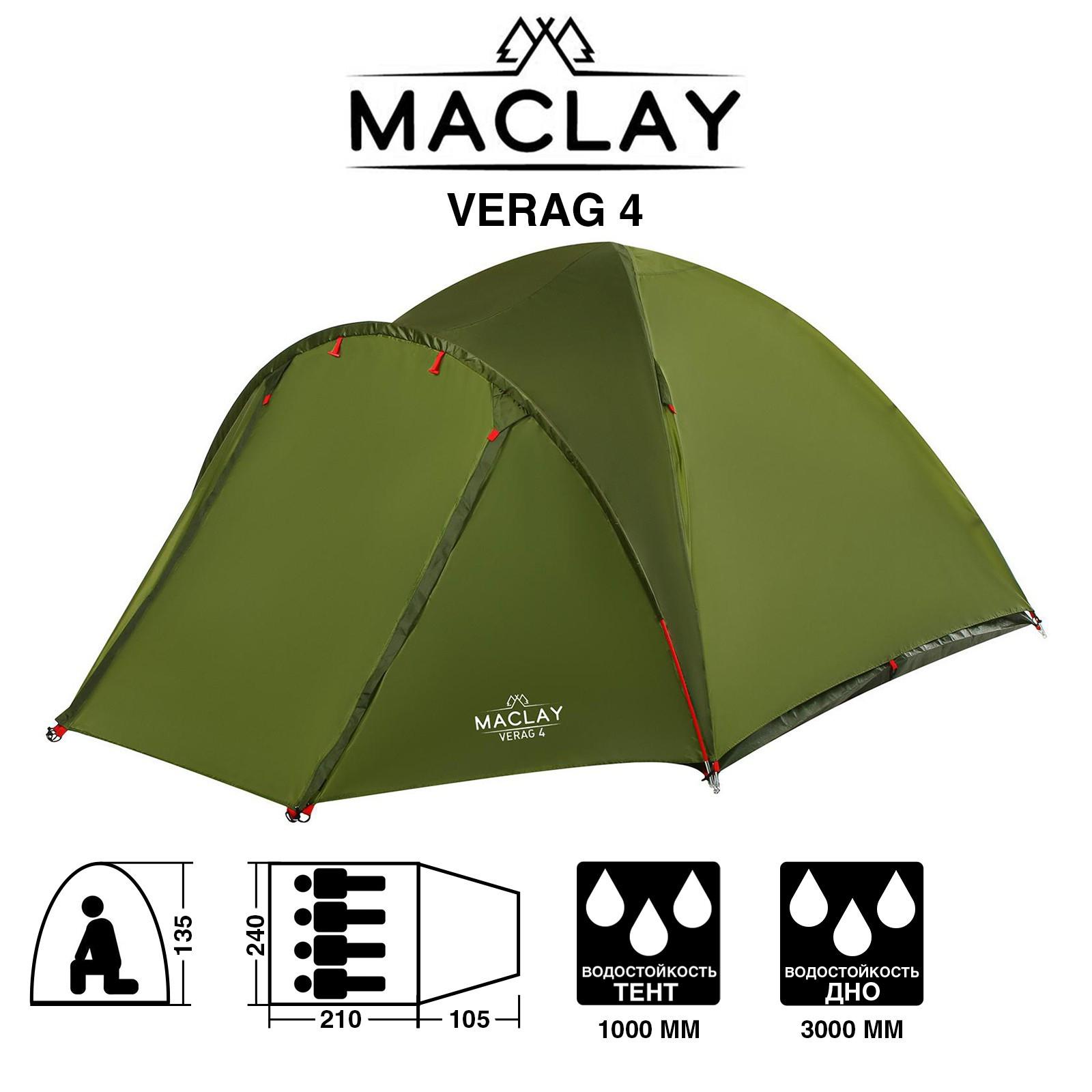 Палатка туристическая VERAG 4, размер 315 х 240 х 135 см, 4-местная, двухслойная 5385304