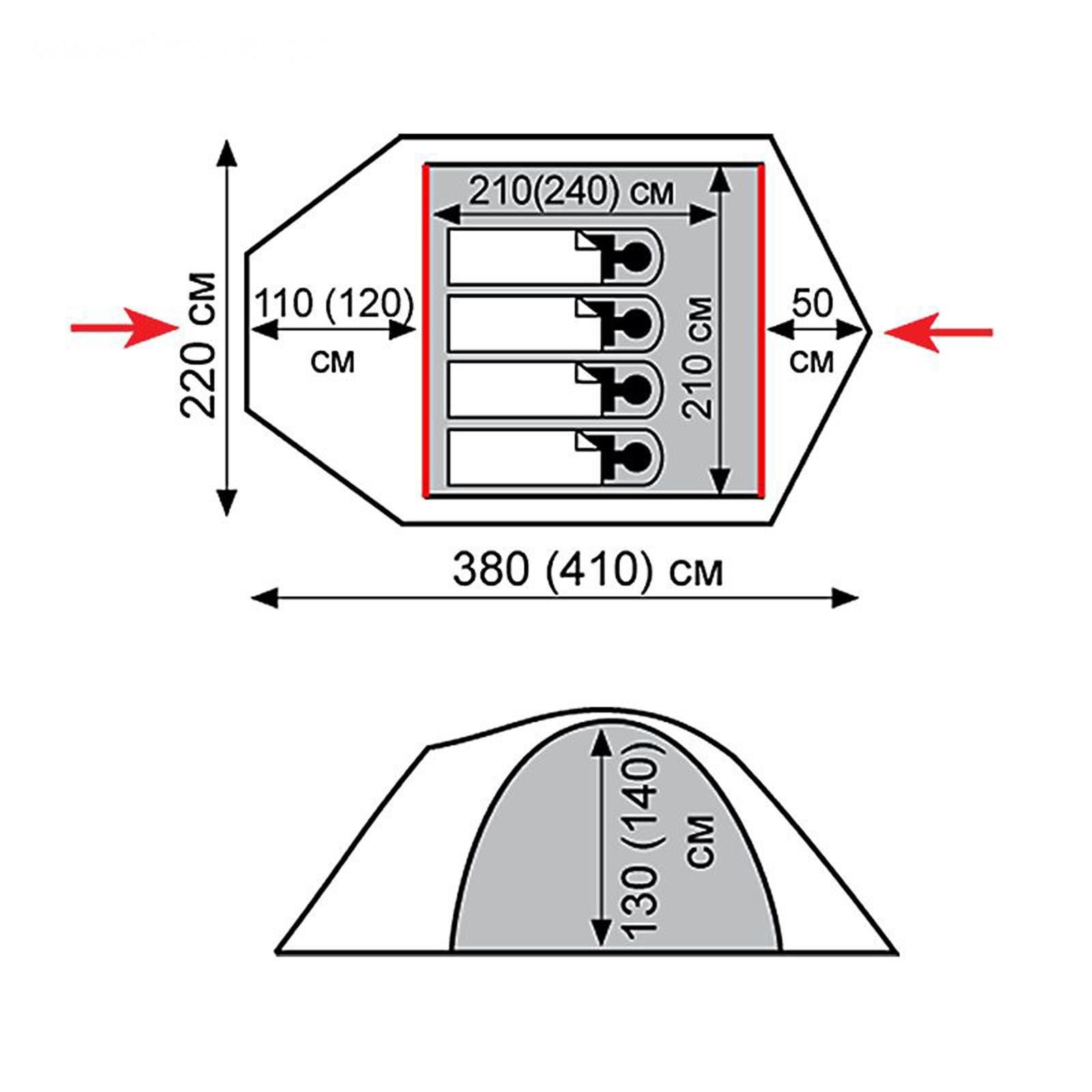 - Размер (Длина × Ширина × Высота) 220 см х 380 см х 130 см