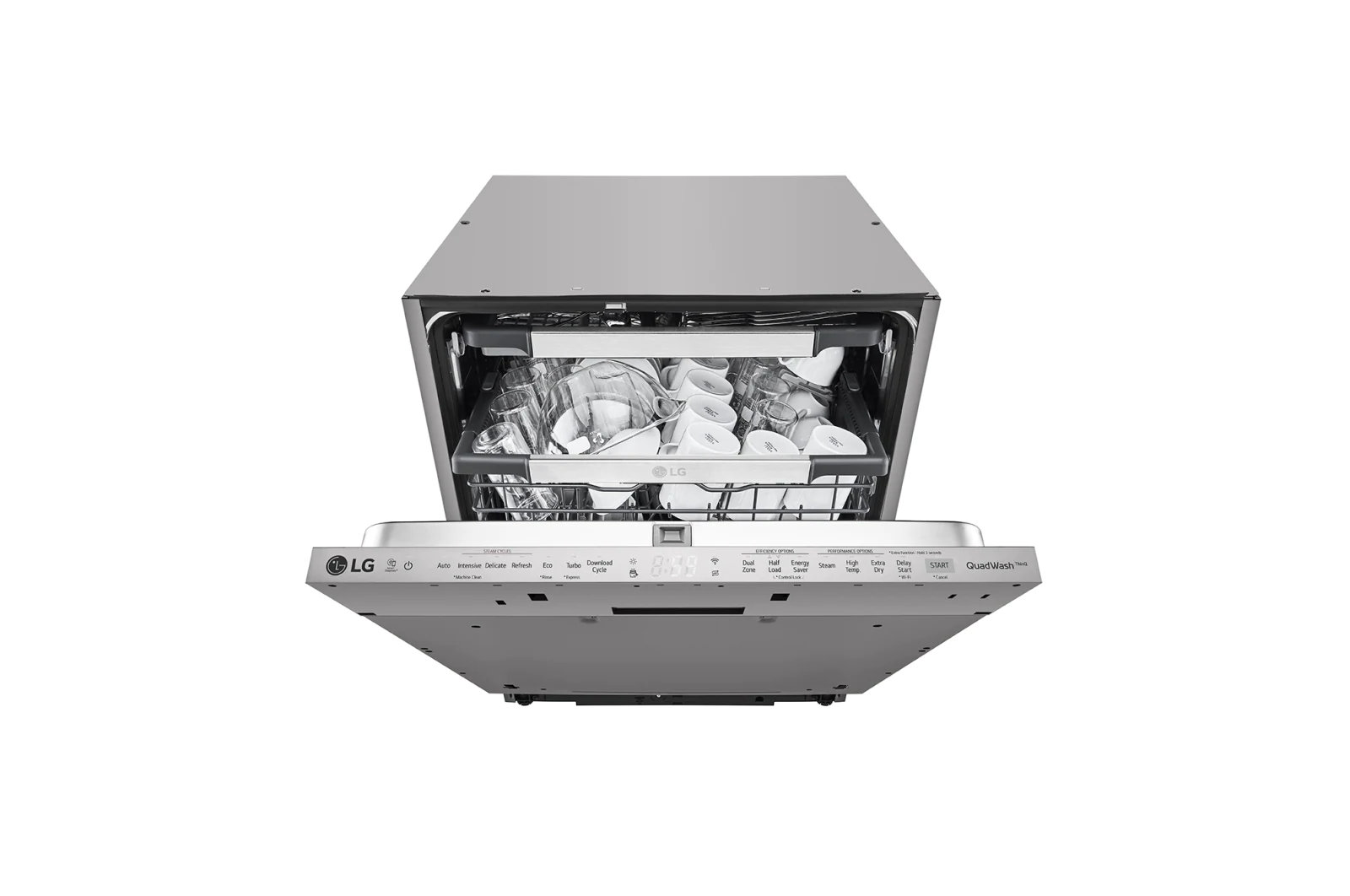 Встраиваемая посудомоечная машина LG DB325TXS с сенсорной панелью управления и возможностью выбора параметров с экрана смартфона располагает 2 большими корзинами и вместительным лотком для столовых принадлежностей. Особенностью представленной модели является технология TrueSteam, способствующая образованию пара, которому под силу проникнуть в самые удаленные участки для последующего устранения даже застарелых пятен. Для компактного расположения чашек и бокалов предусмотрена специальная полка и держатели.