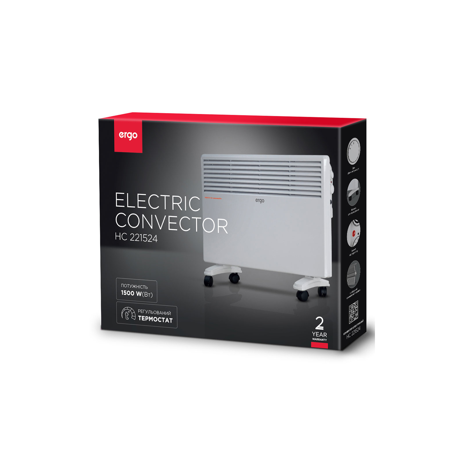 Електричні конвектори ERGO призначені для застосування у якості як основного, так і додаткового джерела обігріву побутових приміщень, офісів тощо. При використанні конвекторів в якості основного джерела обігріву, прилад встановлюються стаціонарно на стіні за допомогою кронштейнів. При використанні конвекторів для додаткового обігріву, прилад може бути встановлений на колісні платформи. І кронштейни, і колісні платформи входять у комплект поставки обігрівача.