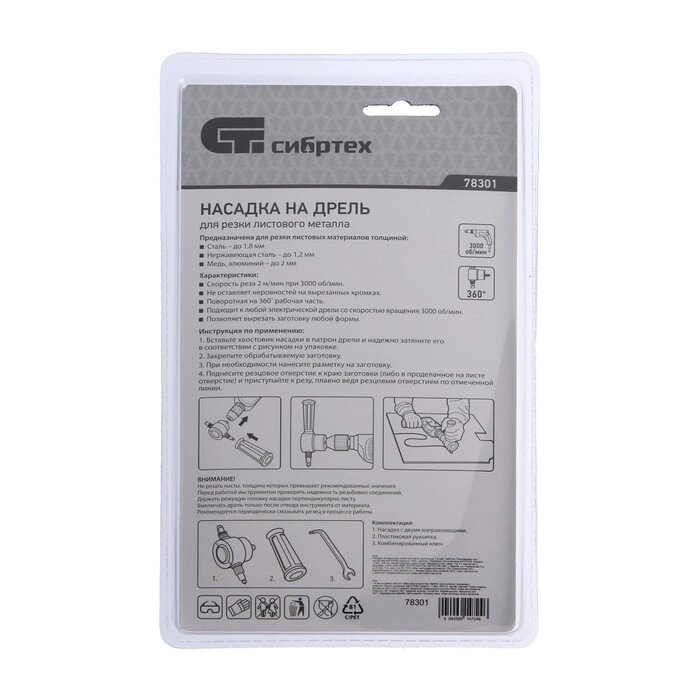 Насадка на дрель для резки листового металла Сибртех, до 1.8 мм