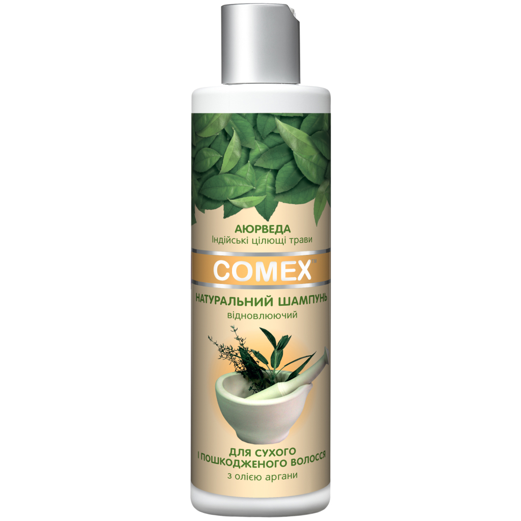 Comex – бренд натуральної доглядової косметики, що активно розвивається, його експерти спеціалізуються на створенні унікальних рецептур аюрведичних шампунів із органічних інгредієнтів. Спеціально для догляду за сухим і пошкодженим волоссям передові майстри розробили натуральний шампунь із індійськими цілющими травами, здатними зробити локони блискучими та сяйними. Також в ідеально збалансовану формулу б’юті-продукту додані арганієва олія й органічний екстракт кокоса, поєднання яких забезпечує зволожувальну та відновлювальну дію.