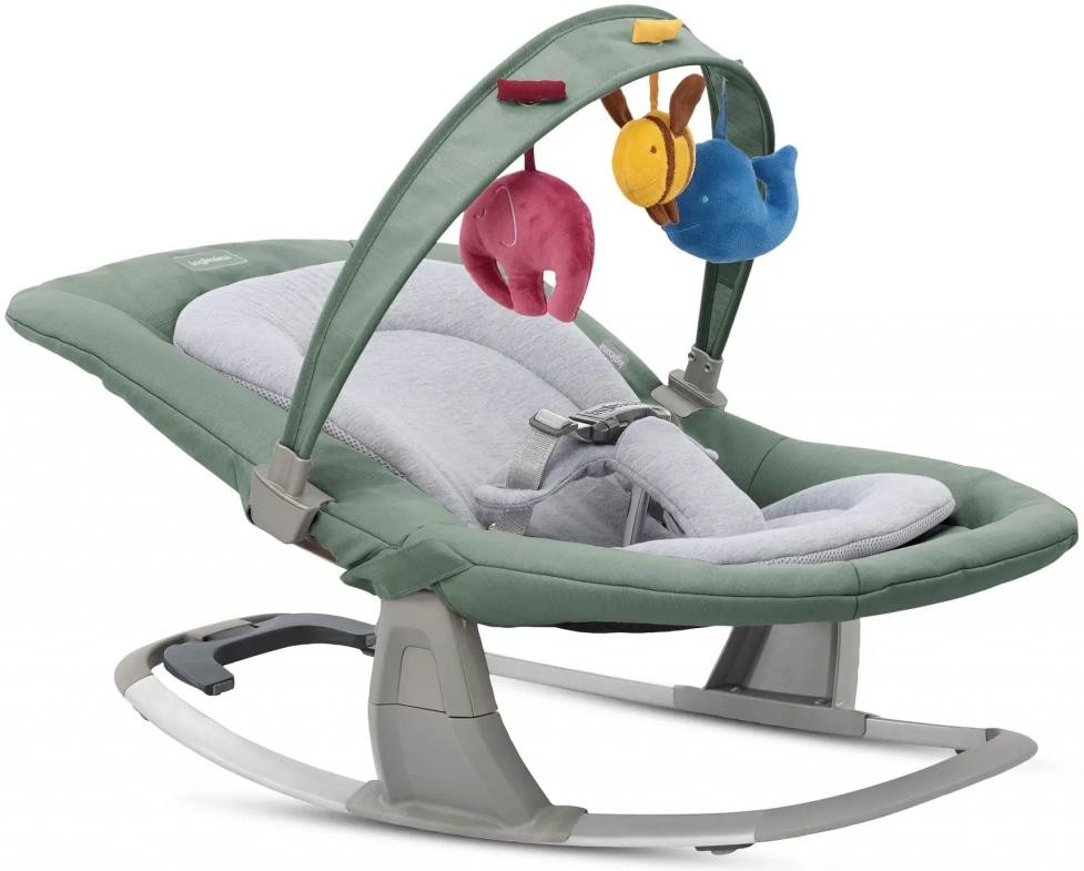 Дуга з трьома м'якими іграшками сприяє розвитку когнітивних здібностей. Щоб малюк міг в будь-якому положенні дотягнутися до іграшок, передбачено регулювання нахилу дуги. Під сидінням шезлонга Inglesina розташовується електронний модуль, який здатний програвати три заспокійливі мелодії для малюка.