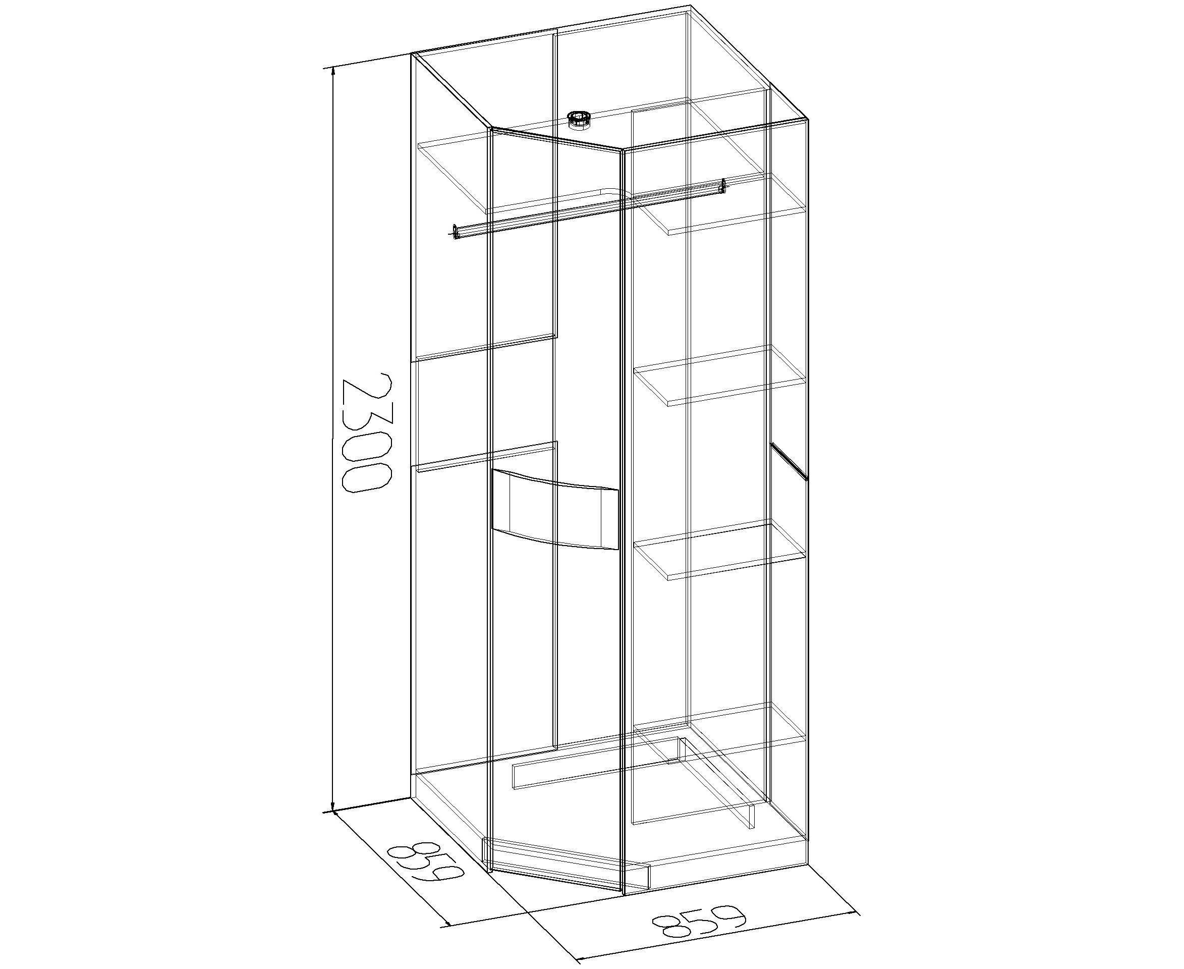 АМЕЛИ 13 Шкаф угловой, оснащен стационарной штангой, полочками для белья и беспроводным светодиодным светильником, который включается при открывании двери. Это особенно удобно, если нужно найти в шкафу вещи, не потревожив близких.