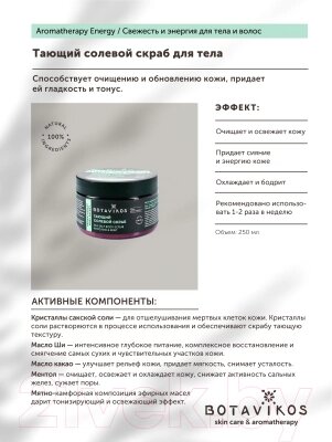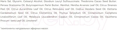 - Активные ингредиенты соль, комплекс натуральных масел, масло авокадо, масло мяты