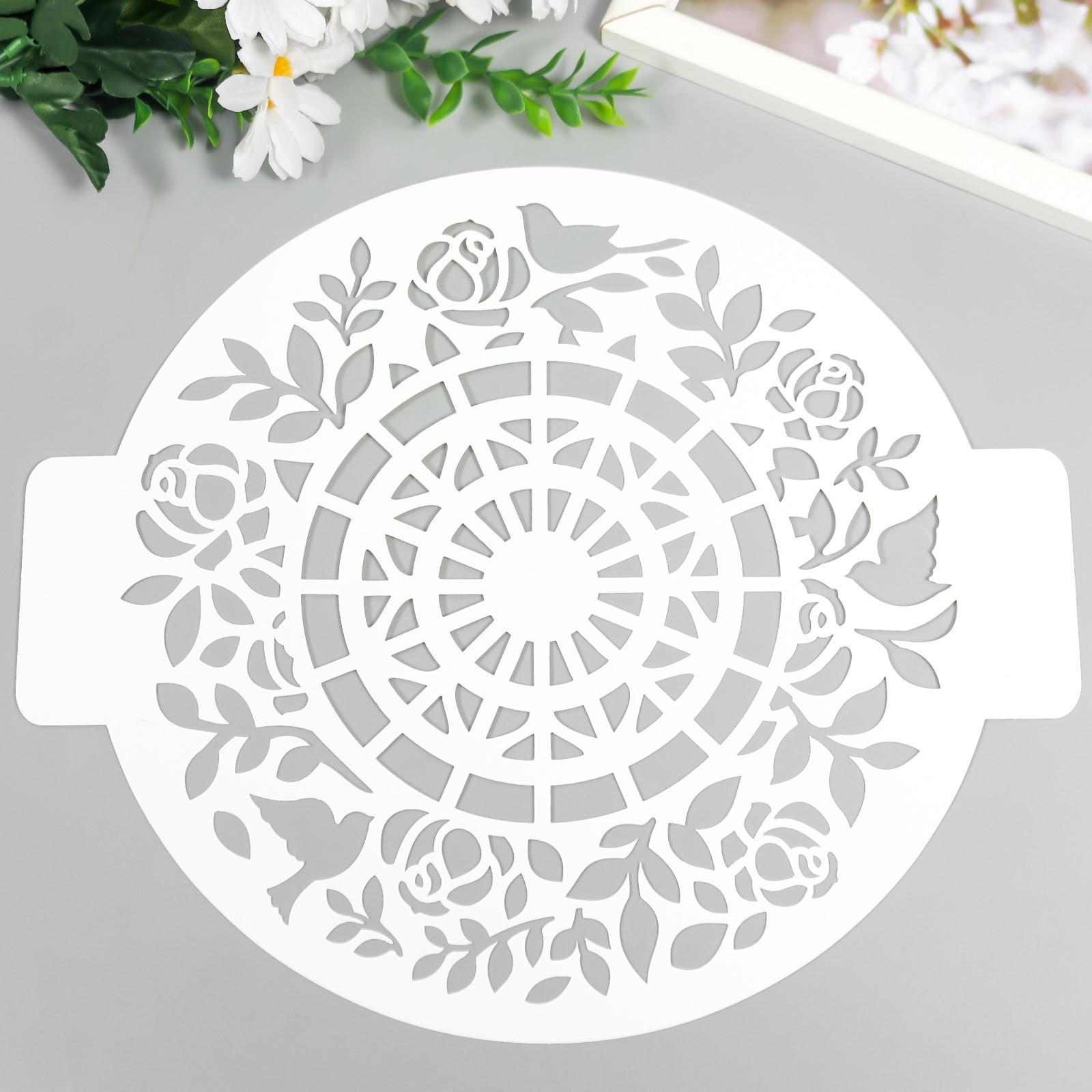 Трафарет пластик "Узор с птичками" D-24 см 7723543