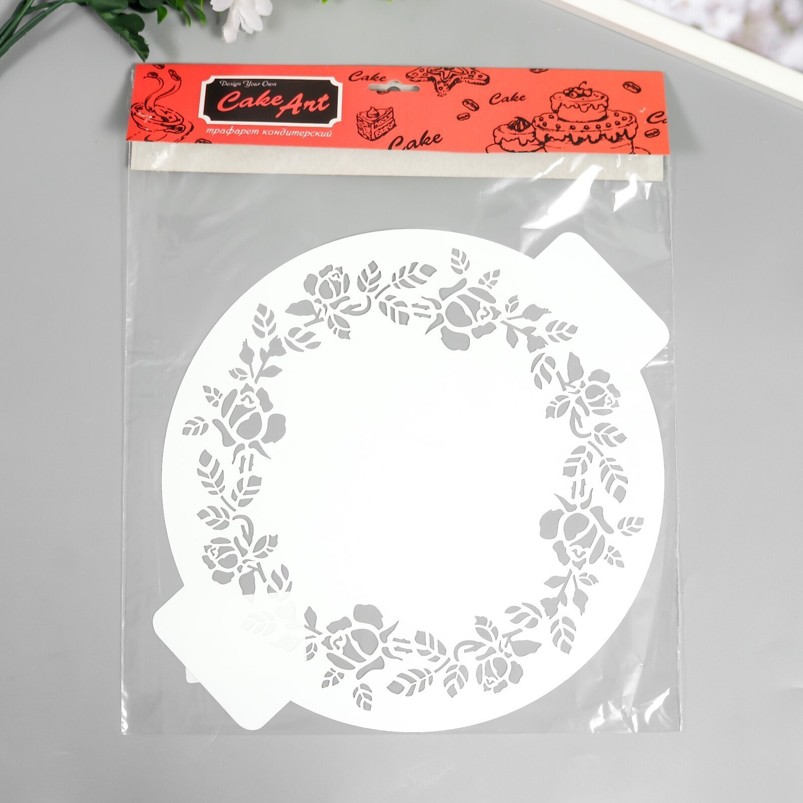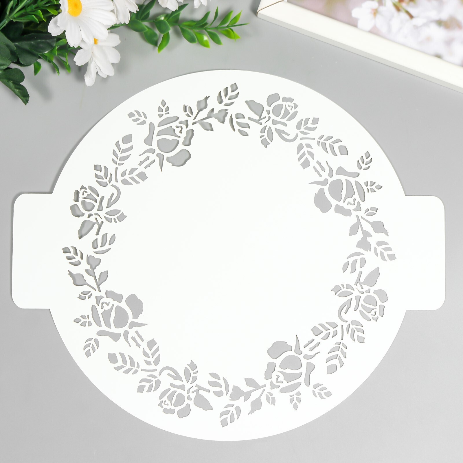Трафарет пластик "Узор из розочек" D-24 см 7723557