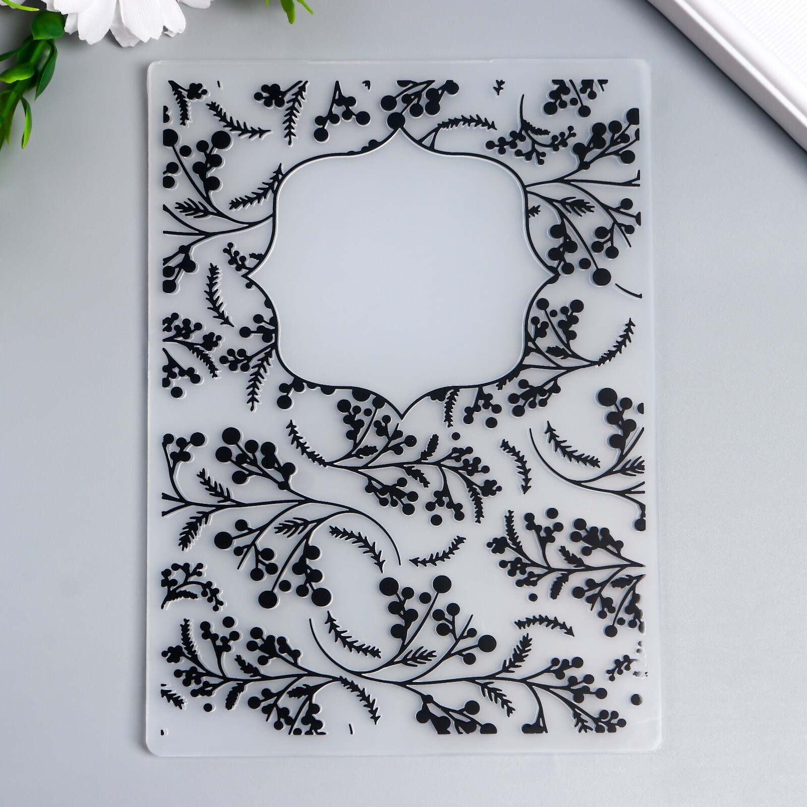 Трафарет для эмбосcирования пластик "Ягодки на веточках" 17,8х12,7 см 7425927