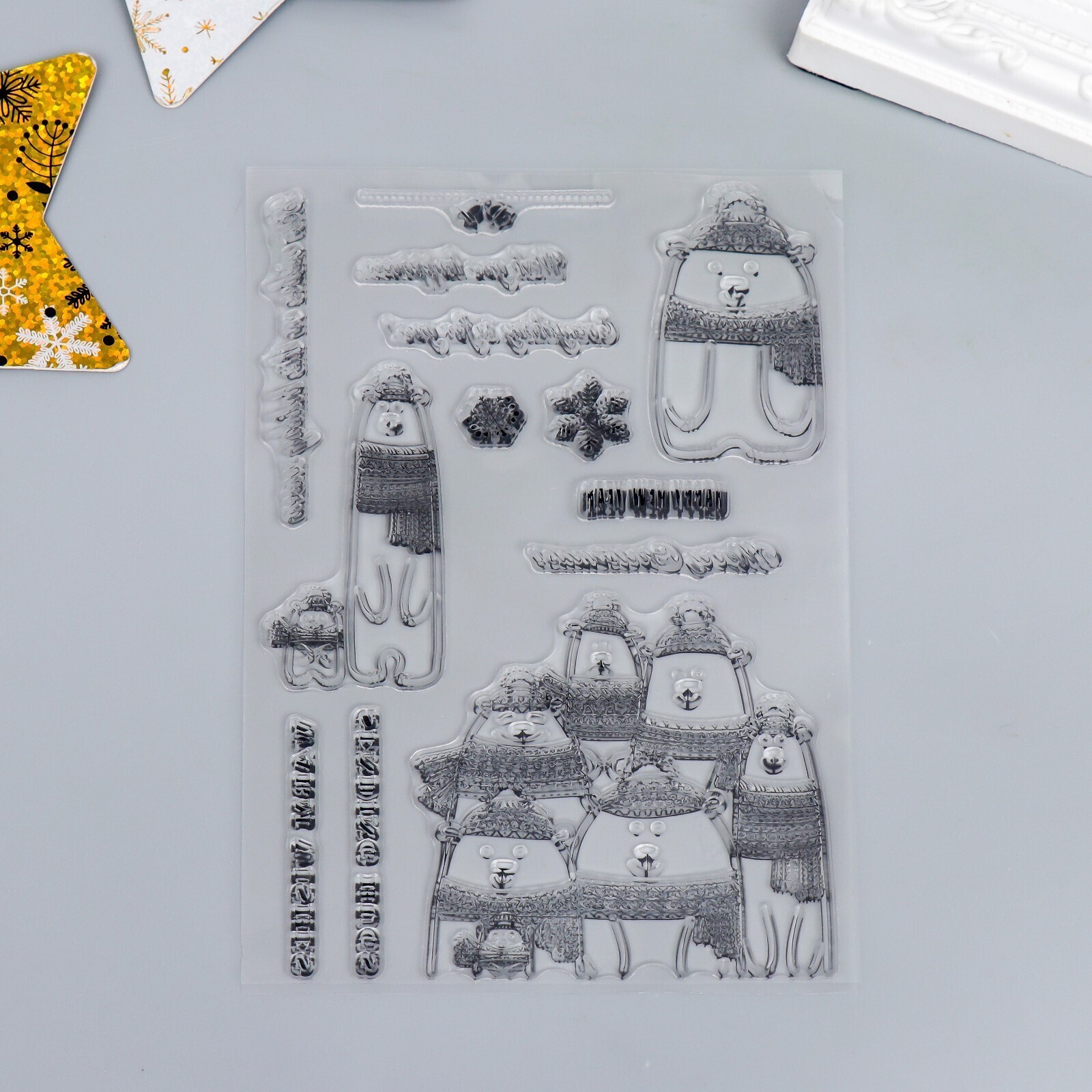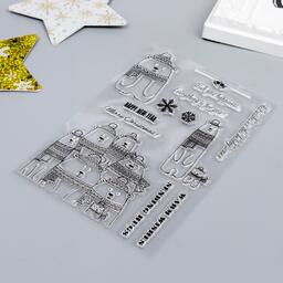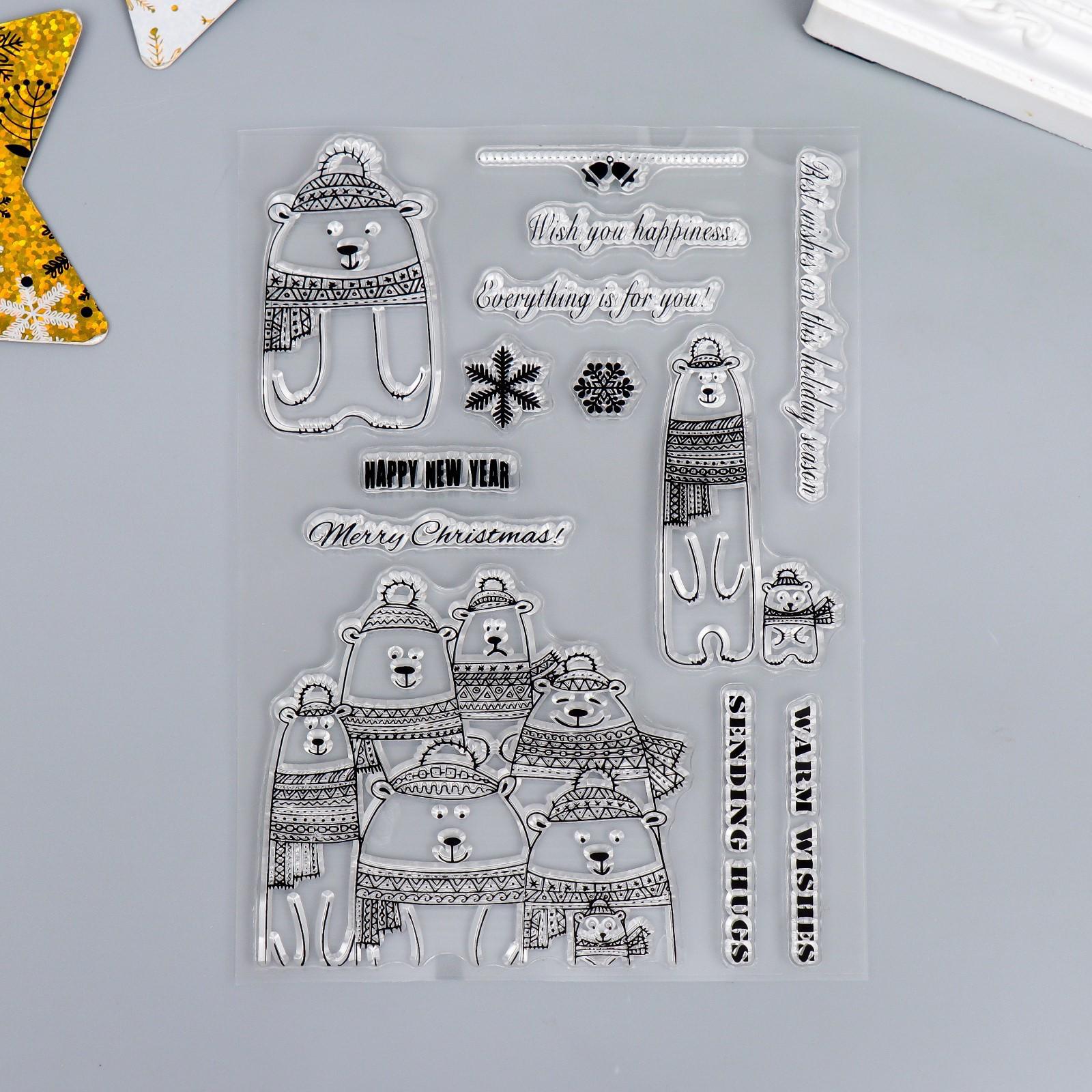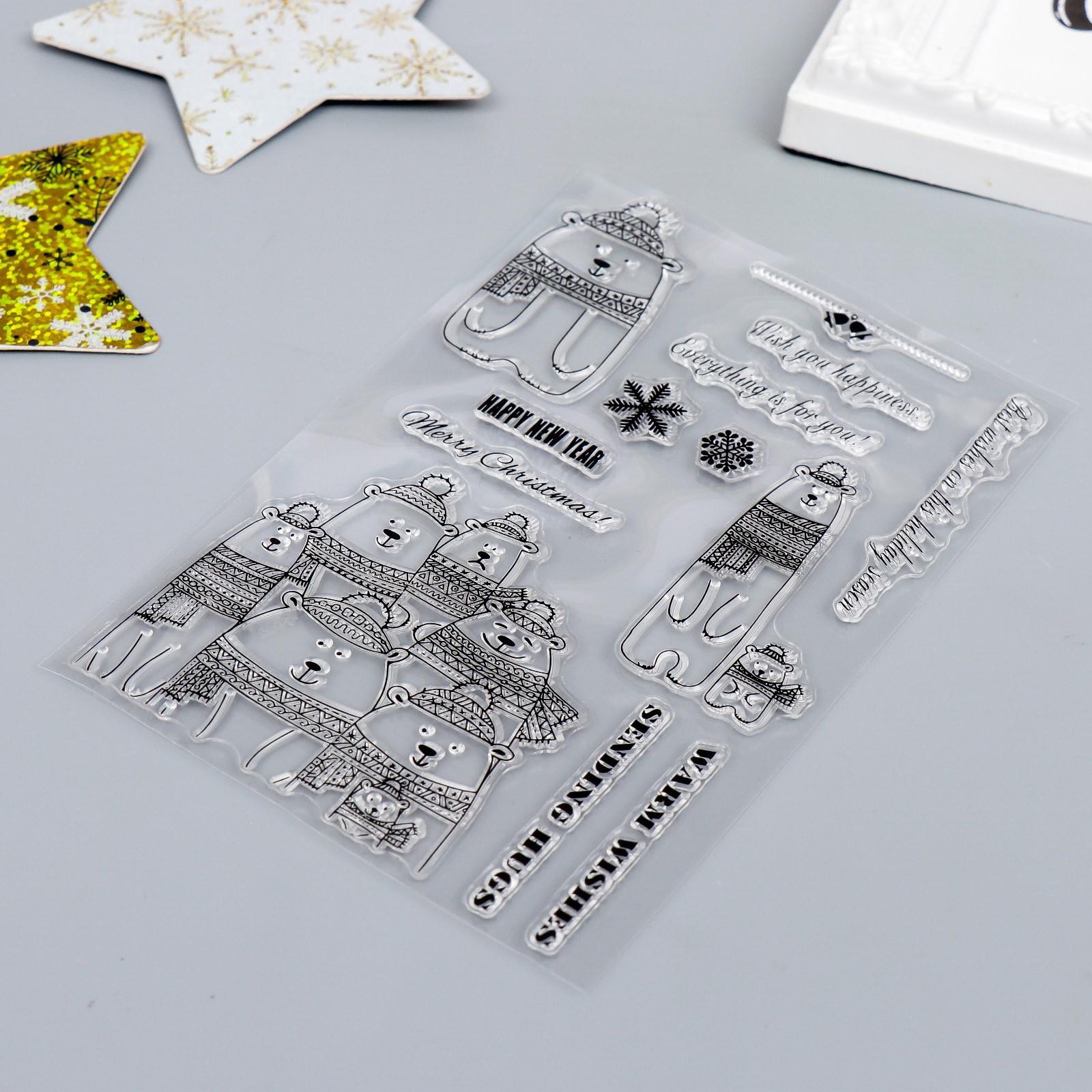 Штамп для творчества силикон "Белые мишки в шапках и шарфах" 16х11 см 7435595