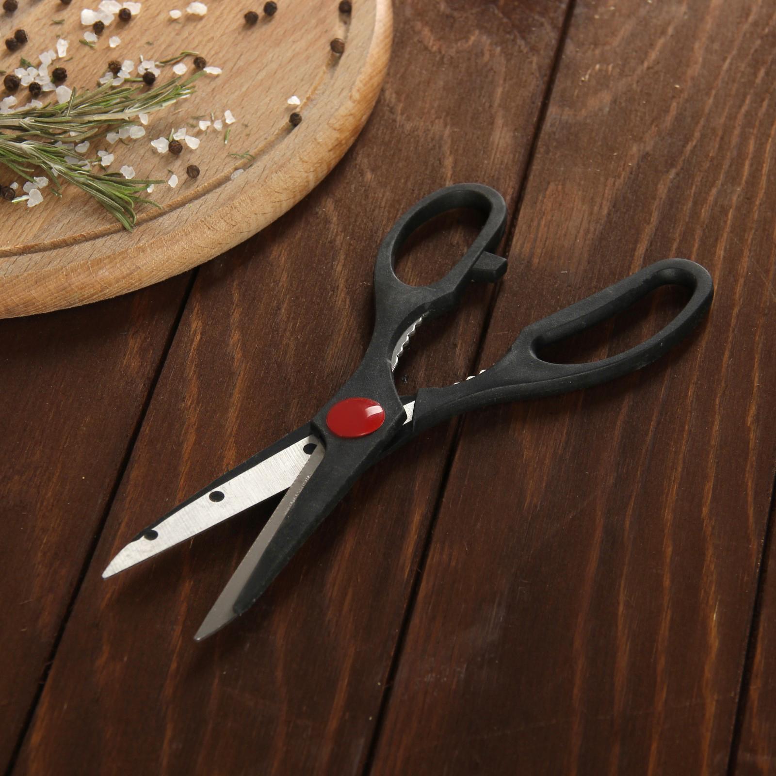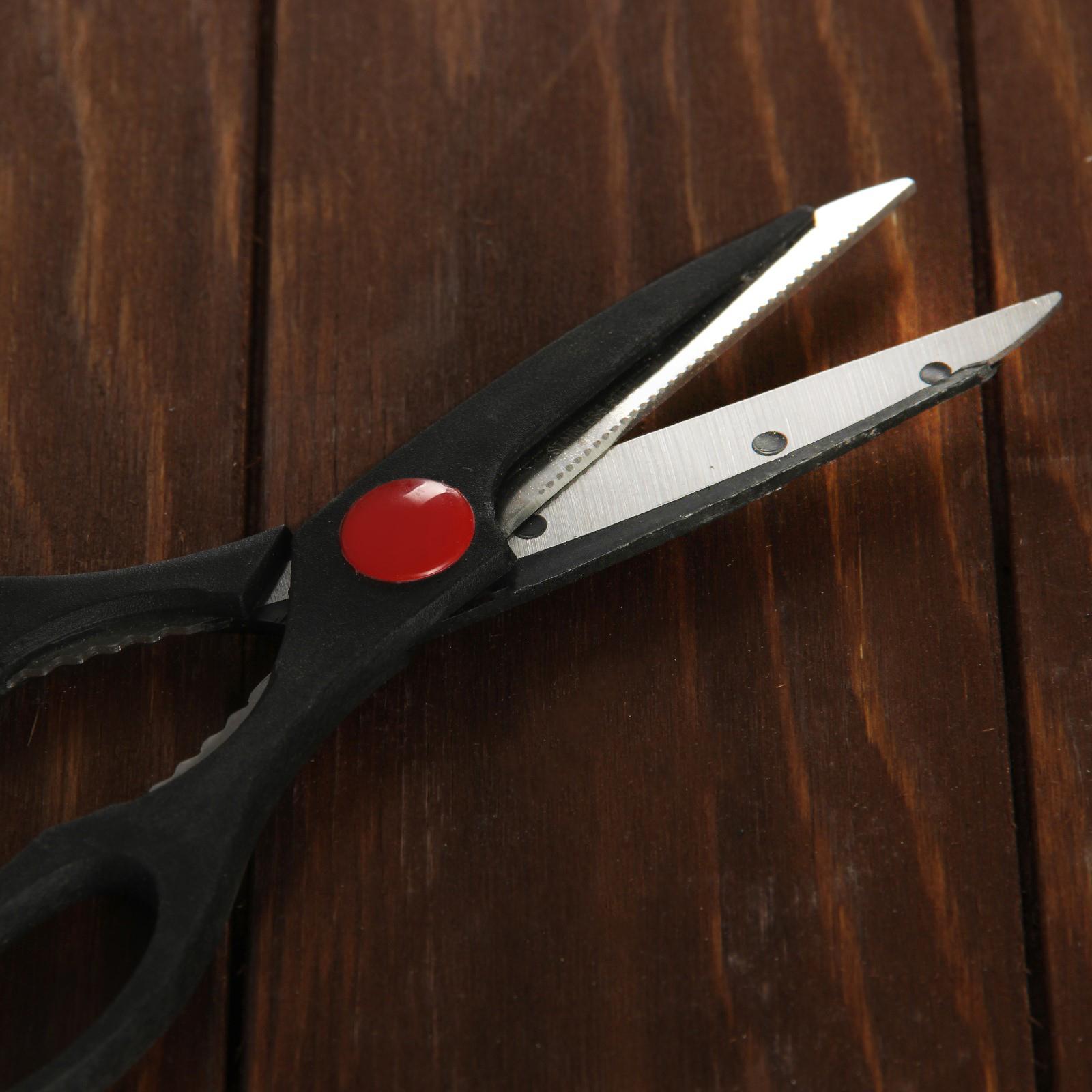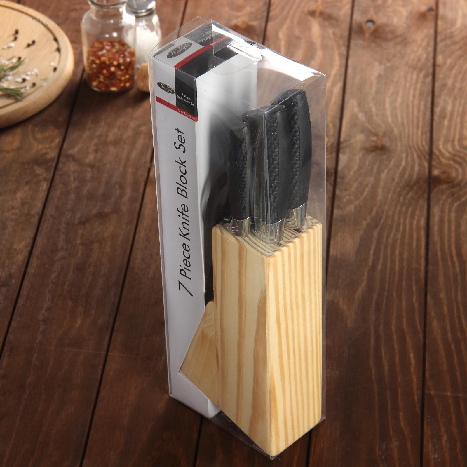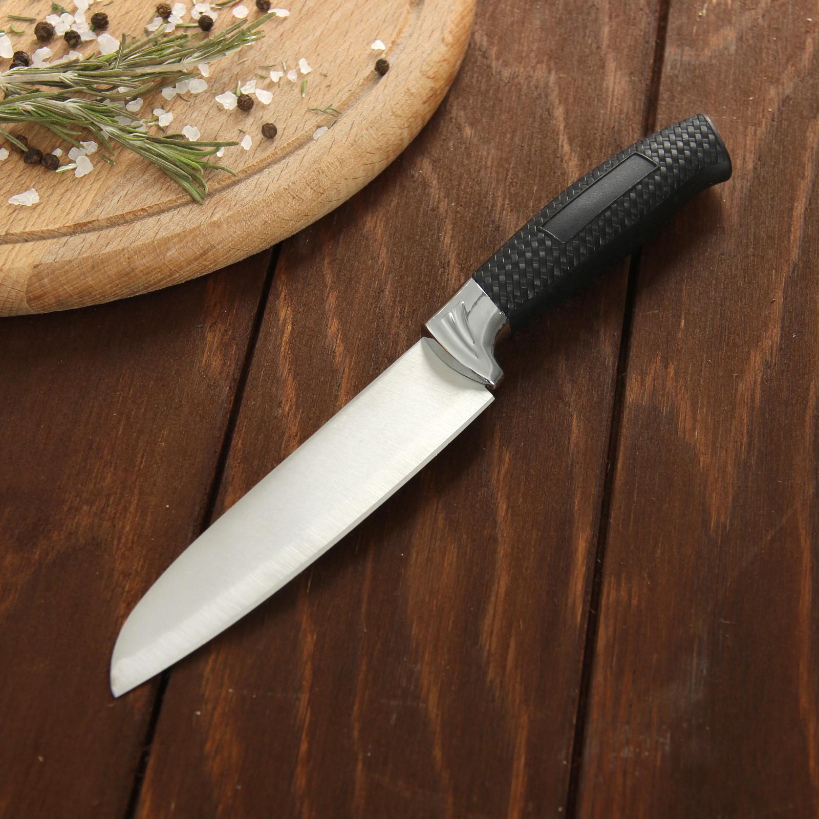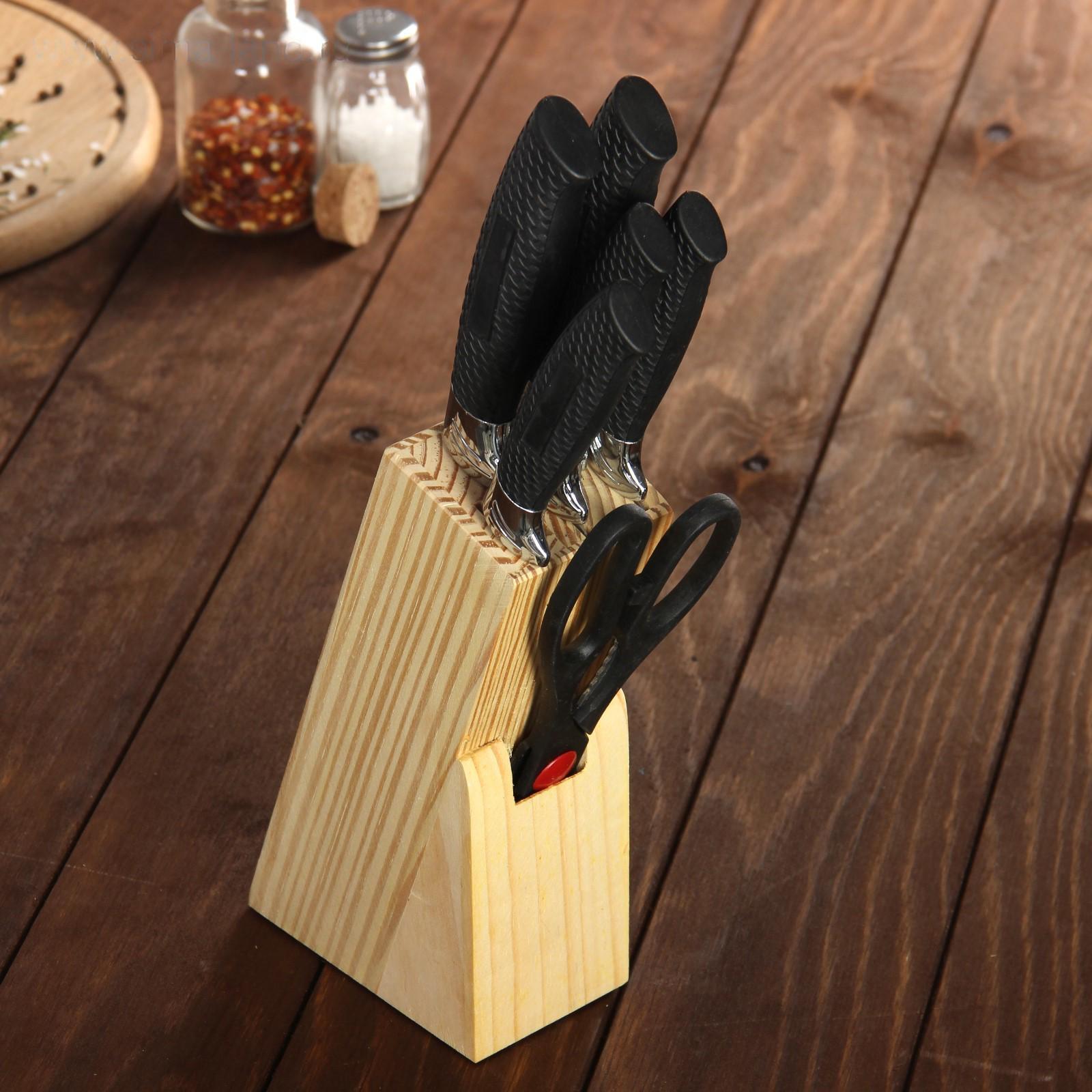Набор кухонный, 6 предметов: 5 ножей 8,5 см, 12 см, 12 см, 19,7 см, 19 см, ножницы, цвет чёрный 3039797