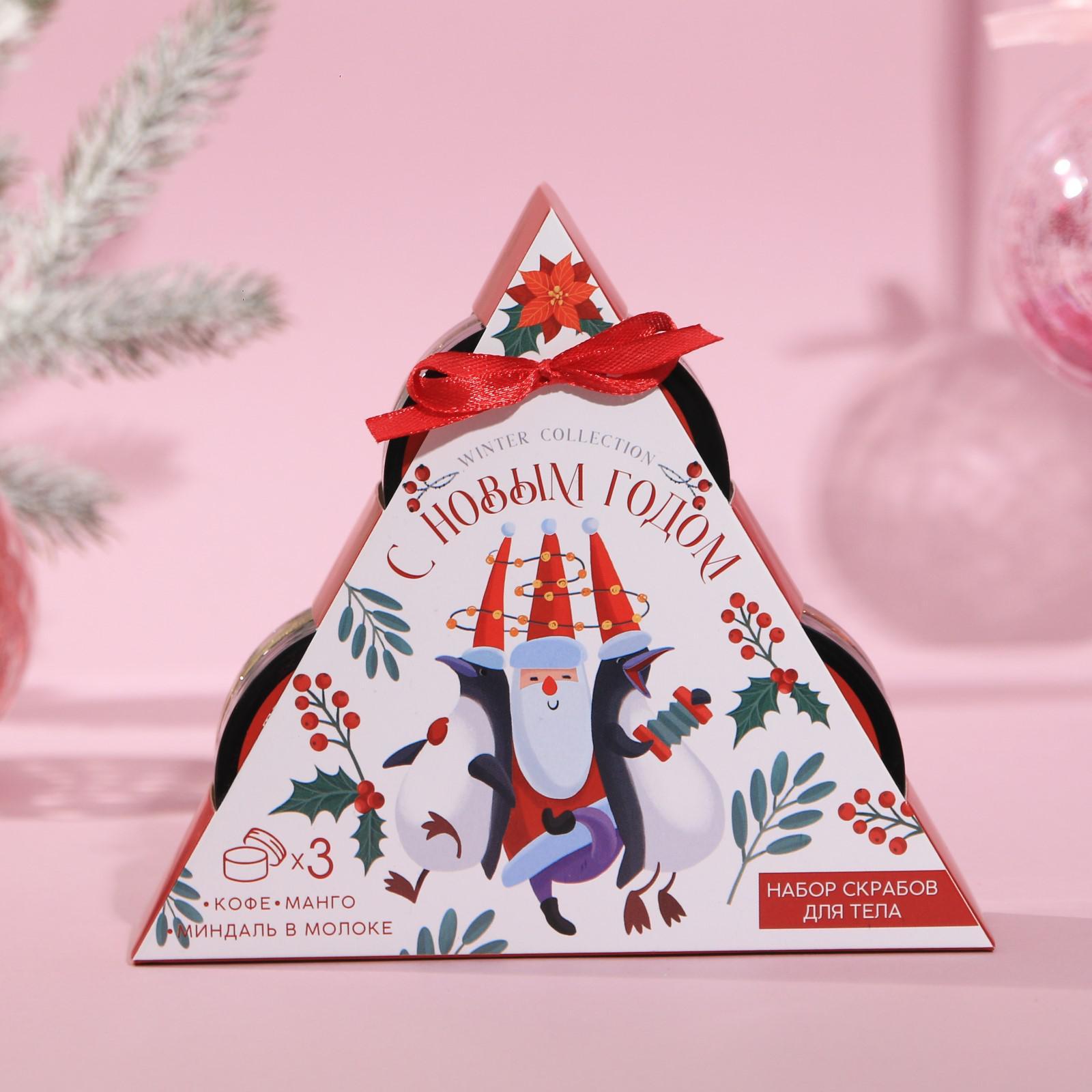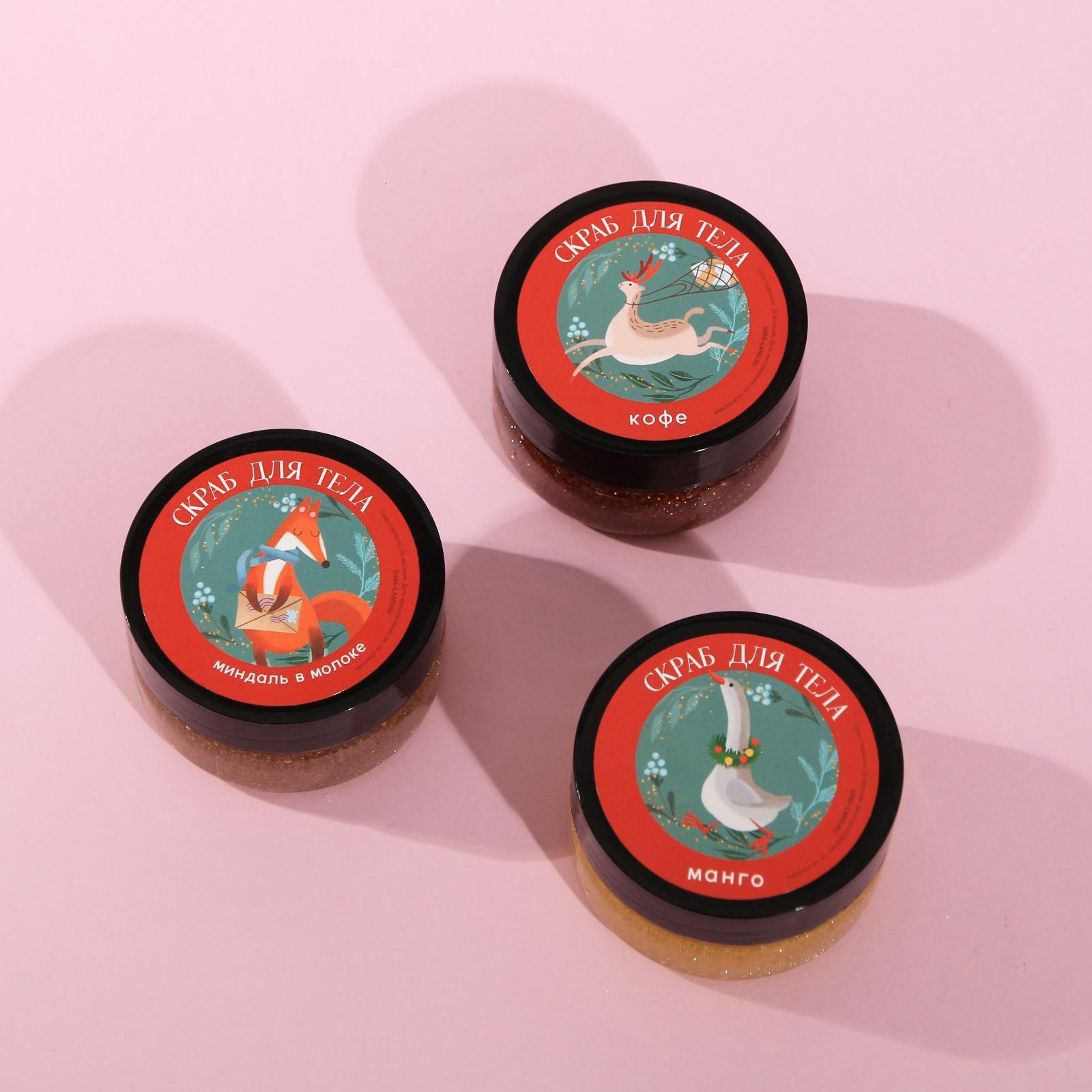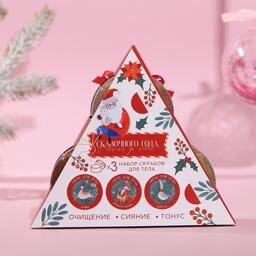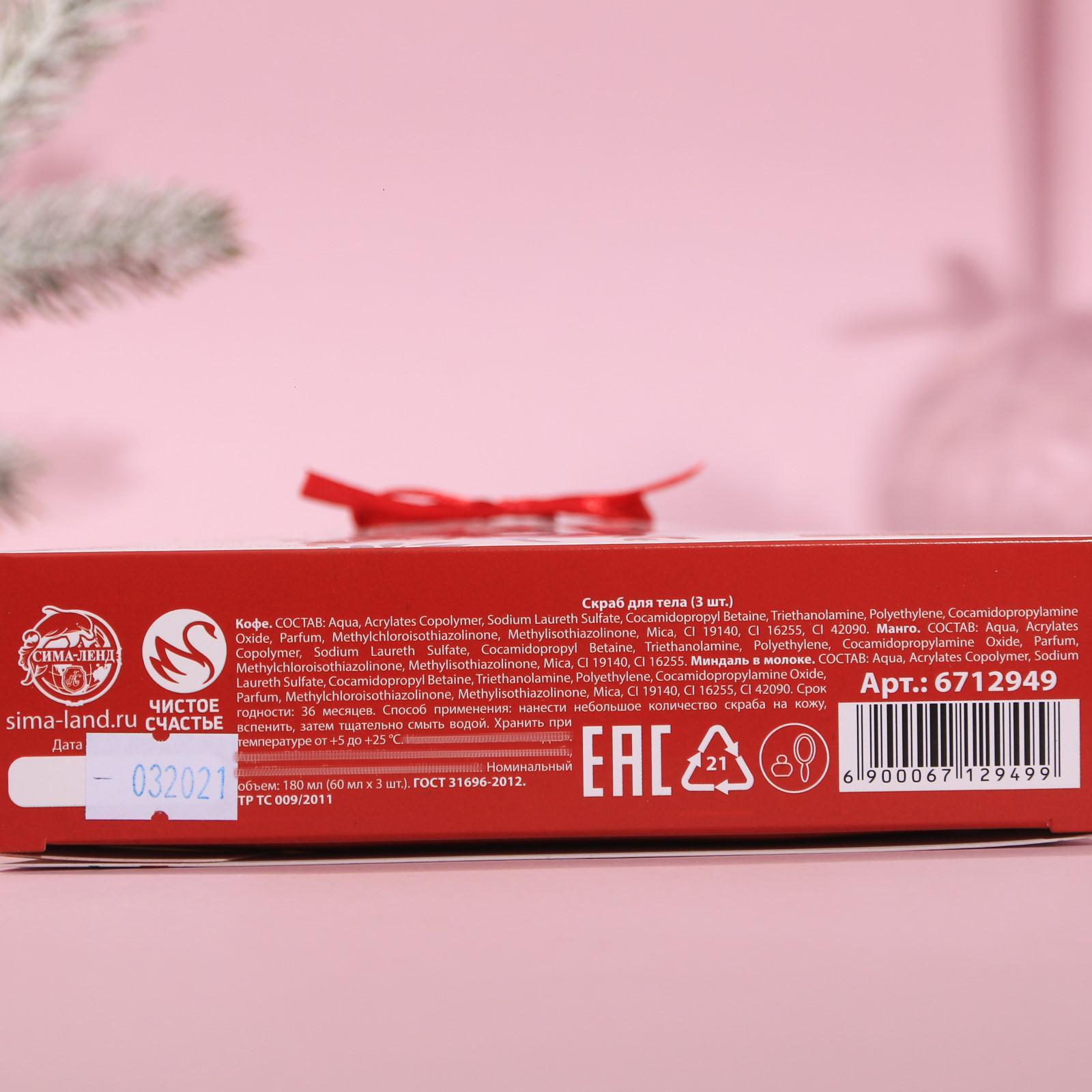 Набор 3 скраба "С Новым годом" 60 мл, аромат кофе, манго, миндаль 6712949