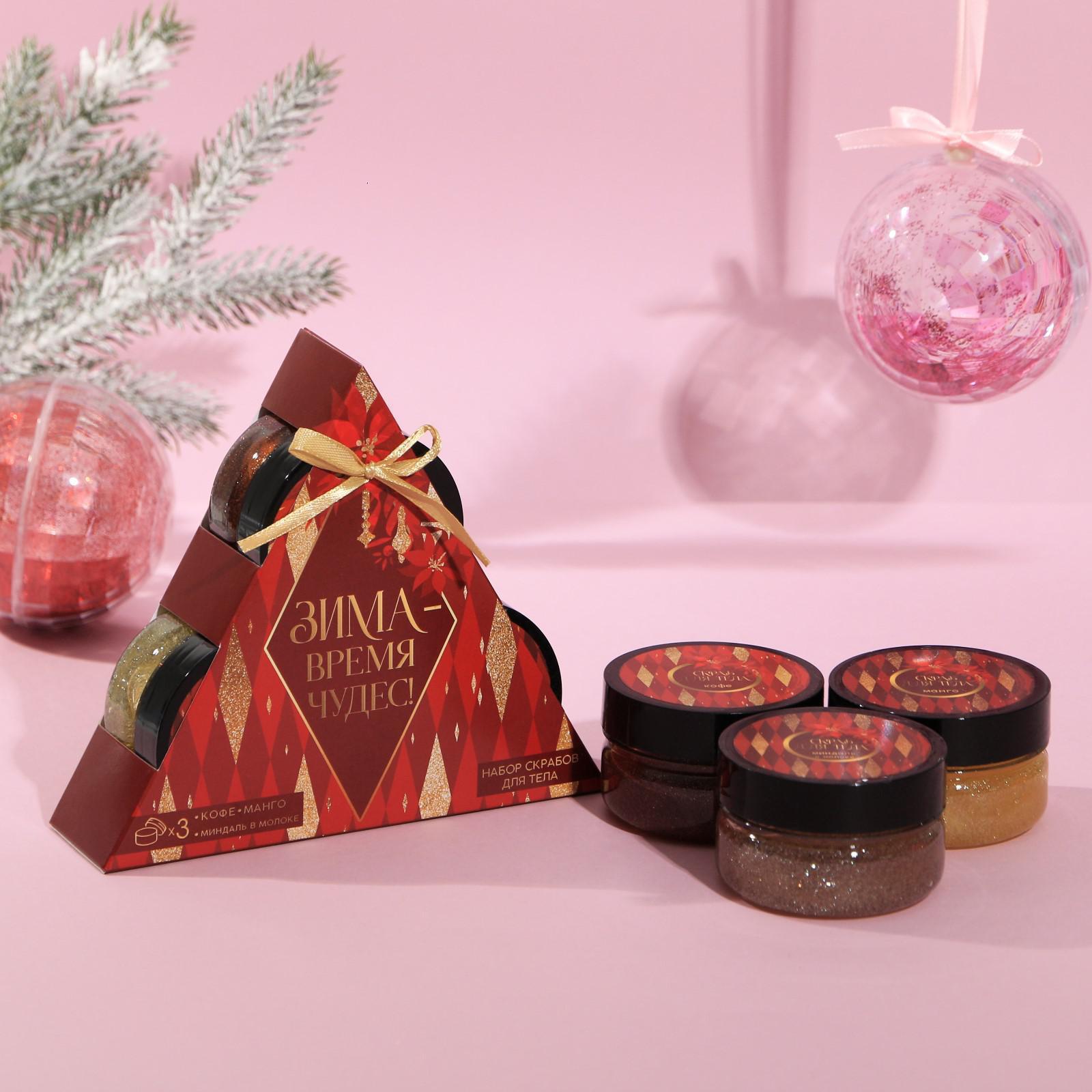 Набор 3 скраба "Зима-время чудес" 60 мл, аромат кофе, манго, миндаль 6712950