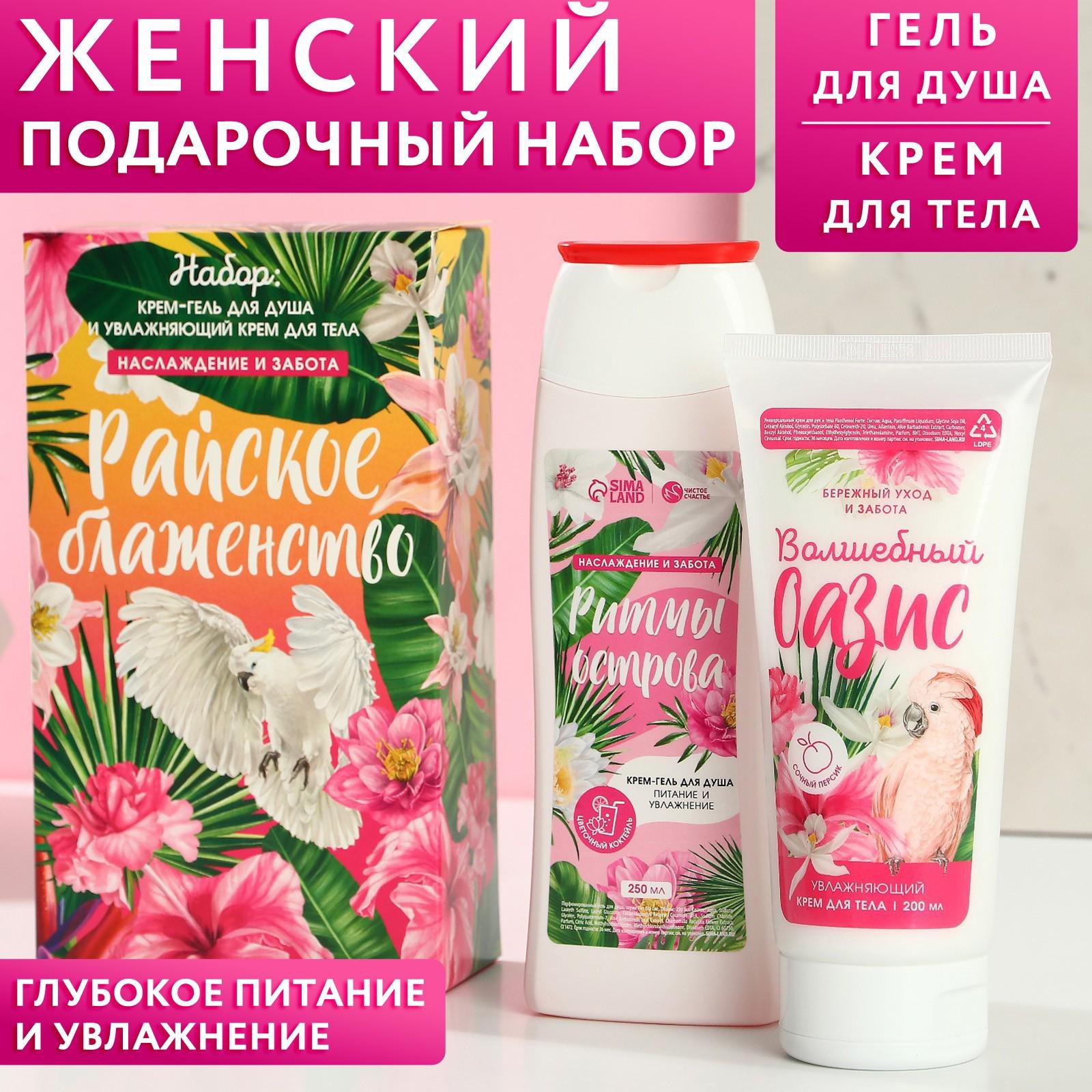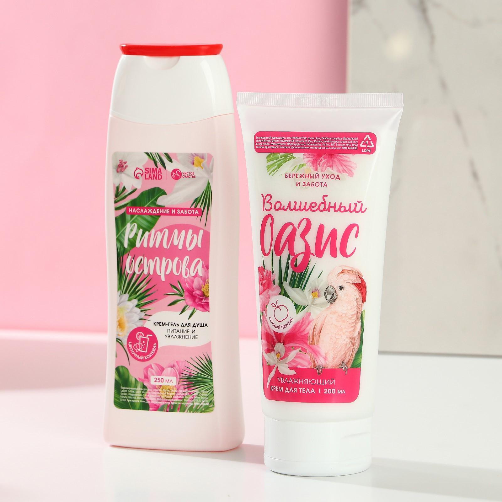 Набор "Райское блаженство": крем-гель для душа 250 мл, аромат цветочный коктейль, увлажняющий крем для тела 200 мл, аромат сочный персик 9047931