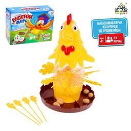 С настольной игрой торговой марки «ЛАС ИГРАС» малыш устроит увлекательное соревнование с друзьями. Его цель — вынуть из гнезда курицы как можно больше перьев, не уронив при этом яйца. Конкурс продолжается до тех пор, пока птичий домик не будет полностью разрушен. Выигрывает тот, у кого в конце игры останется наименьшее количество яиц.