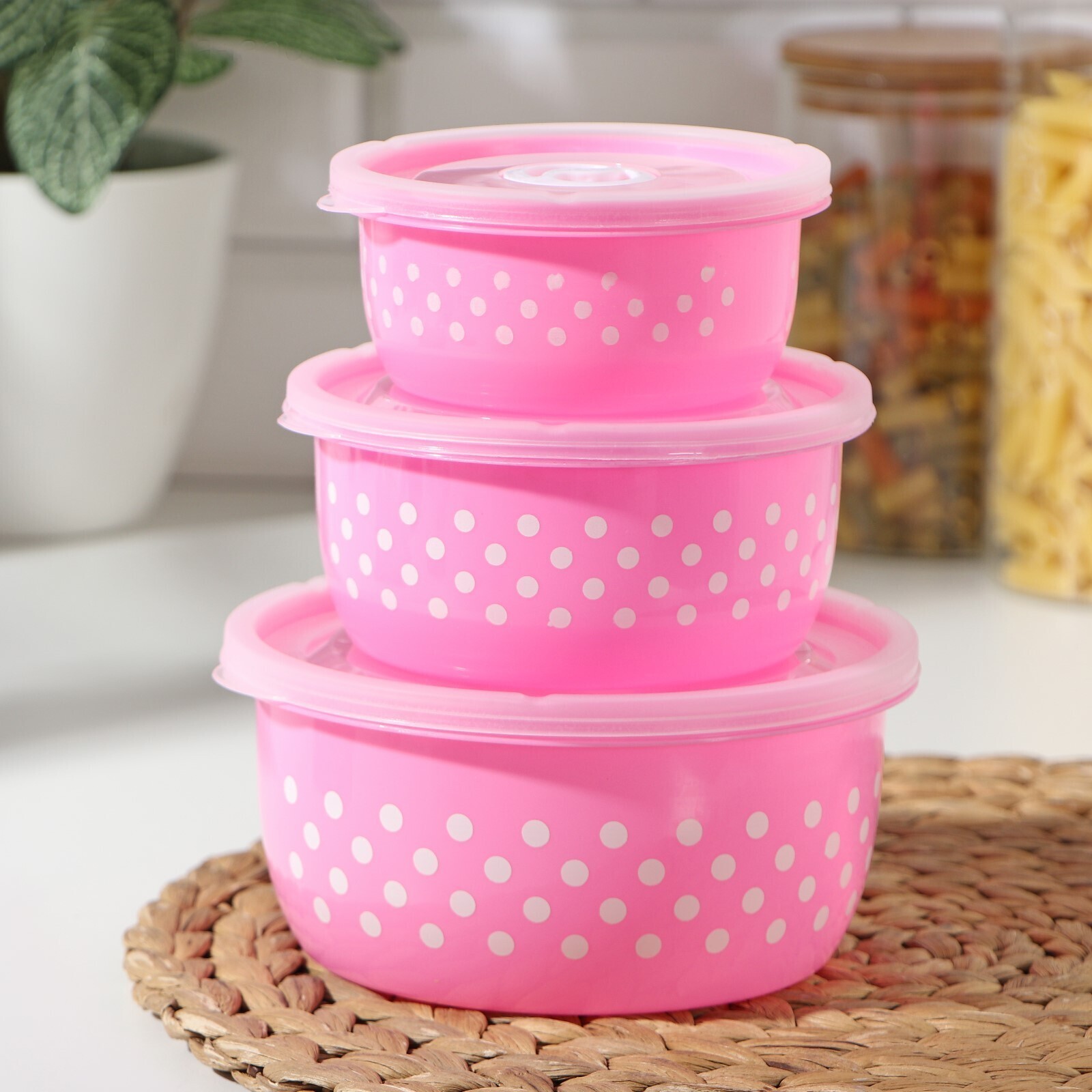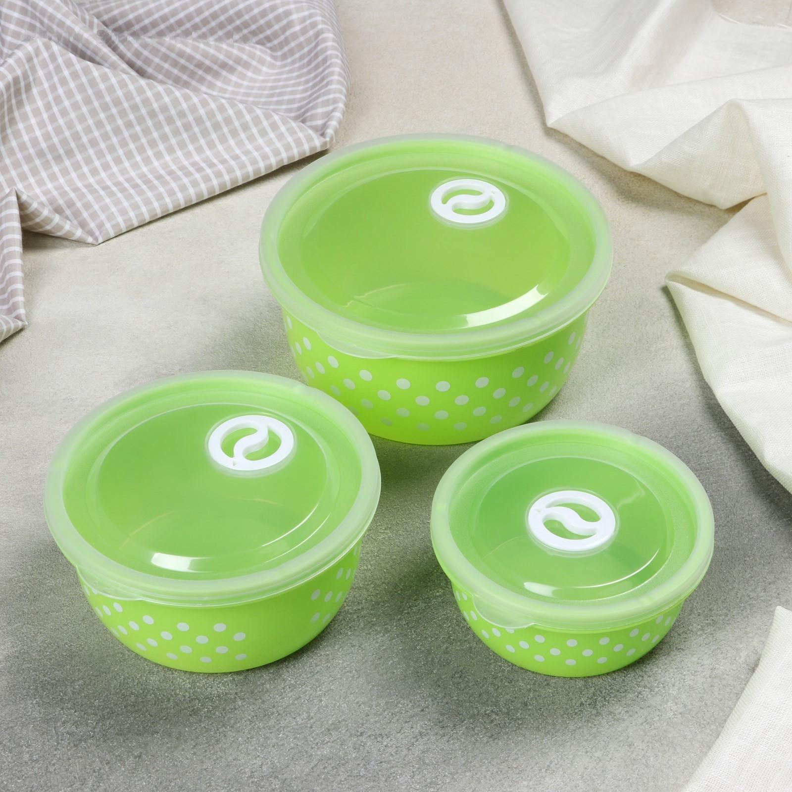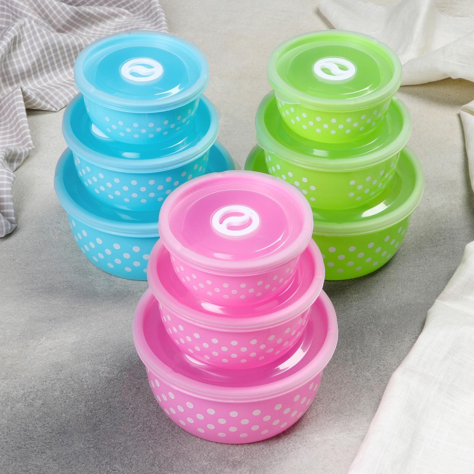 Набор ланч-боксов «Горошек», 3 шт: 0,3 л, 0,6 л, 0,9 л, цвет МИКС 1813666