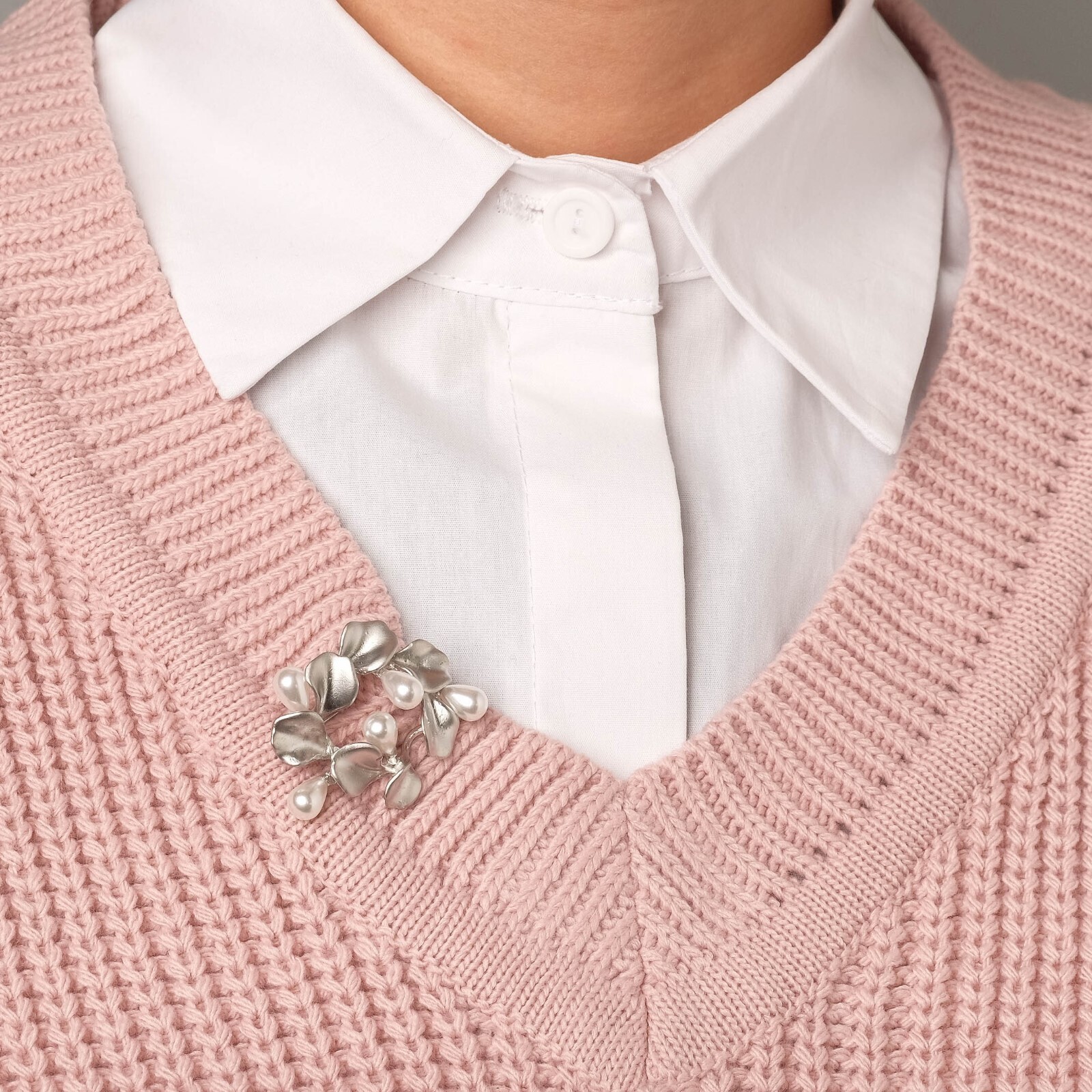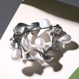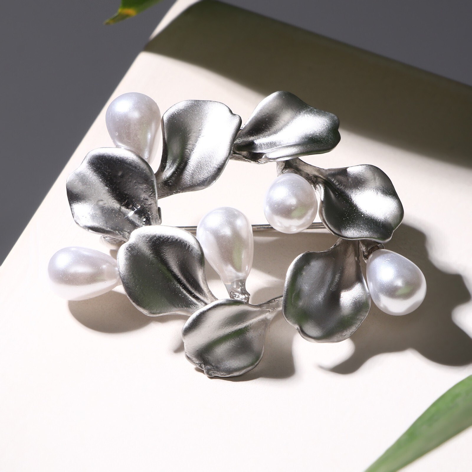 Брошь "Лепестки и бусины", цвет белый в матовом серебре 7355767
