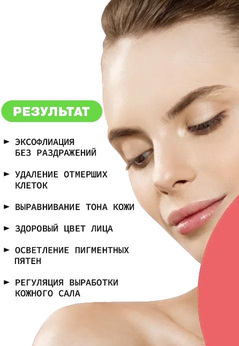 • Действие очищающее, отшелушивающее, выравнивание тона, осветляющее, противовоспалительное, себорегулирующее, от пигментных пятен, антибактериальное