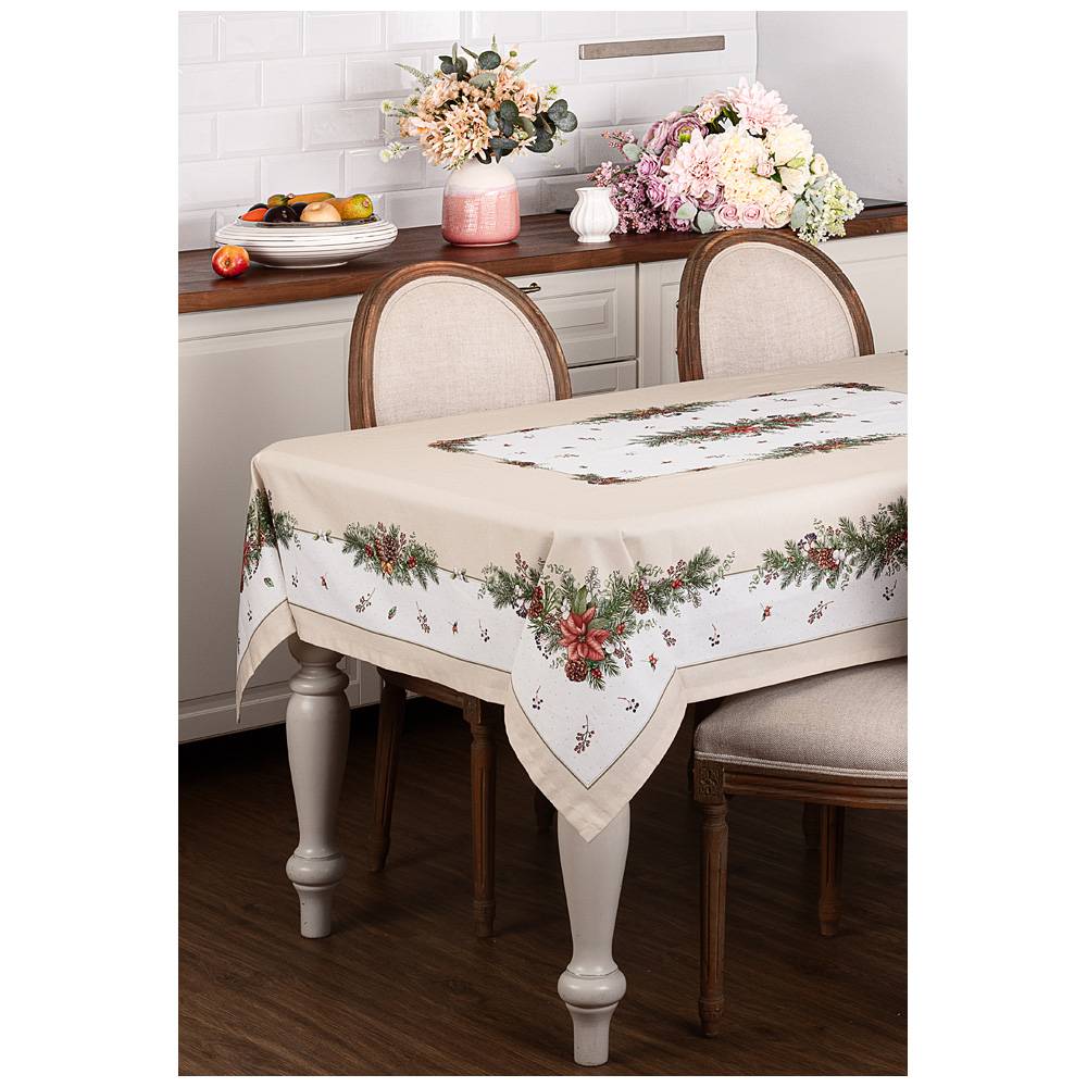 СКАТЕРТЬ "CELEBRATION" 160Х220СМ ,БЕЖЕВЫЙ,100% ХЛОПОК С ПРОПИТКОЙ,ТВИЛ,ГОРОХ 850-734-24