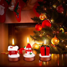 Новогодний набор декоративных свечей, дом, 3 шт, цвет красный, свеча 3,8х5,5 см, размер упаковки 14х5,5х6,5 см