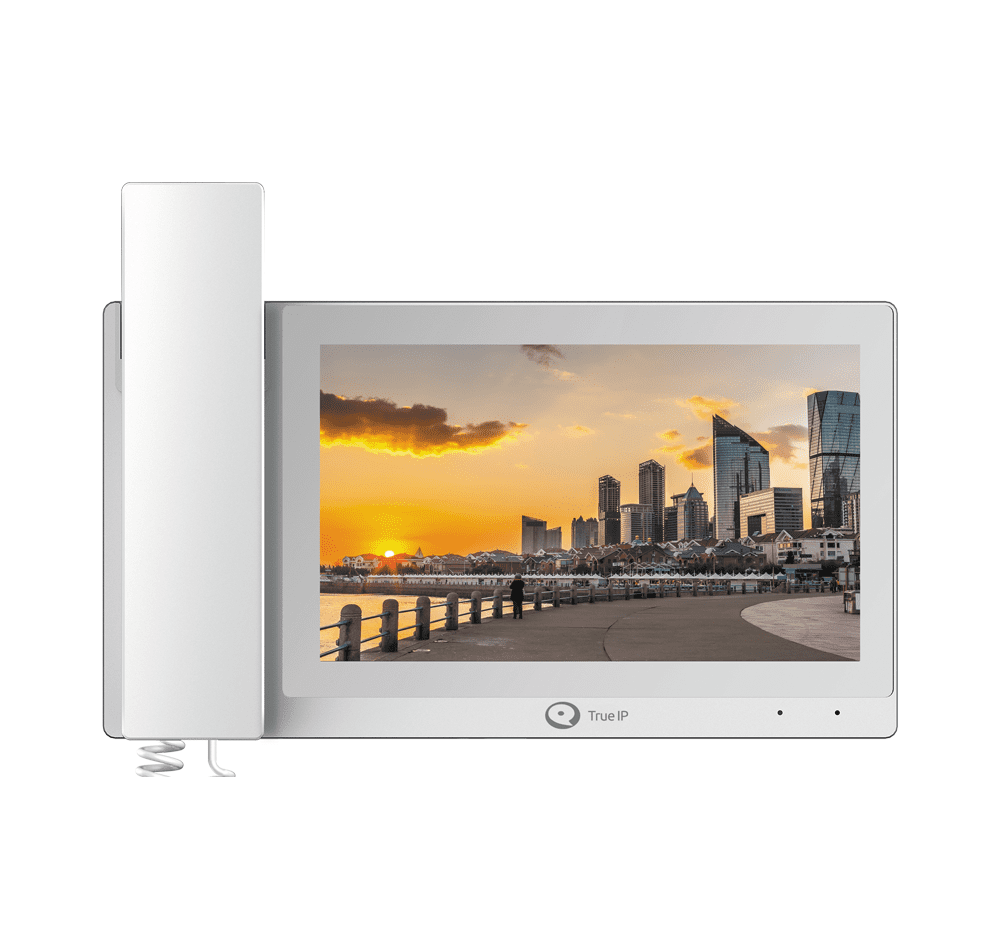 Функциибеззвучный режим запись снимков и видео вручную управление 2 замками подключение до 20 IP-панелей подключение до 32 IP камер телефонная книга, интерком прием текстовых сообщений сменные мелодии поиск вызывных панелей при настройке просмотр дополнительных камер во время вызова журнал событий