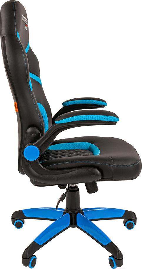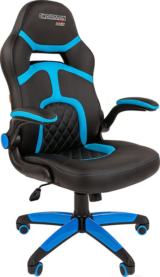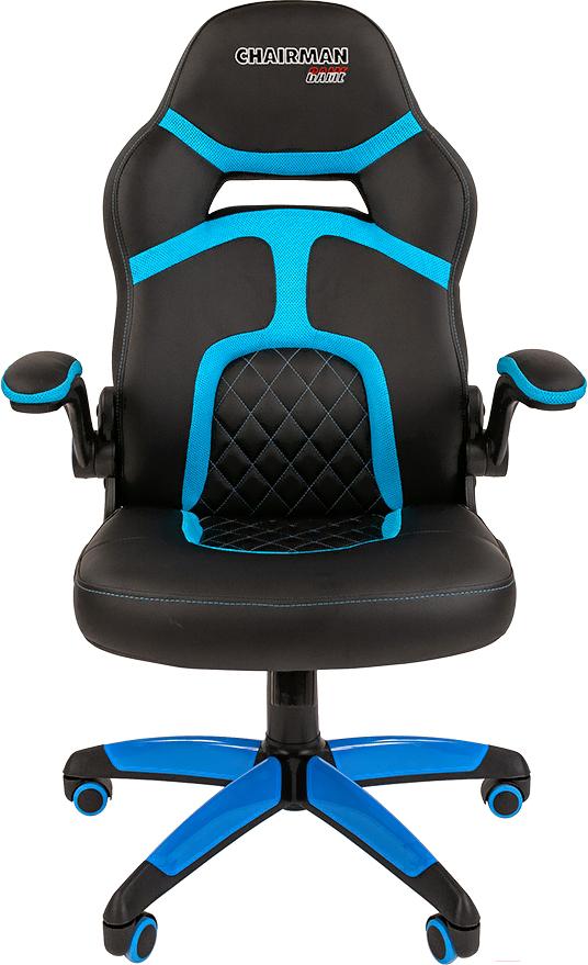Кресло геймерское Chairman Game 18 новый подлокотник (экопремиум, черный/голубой)