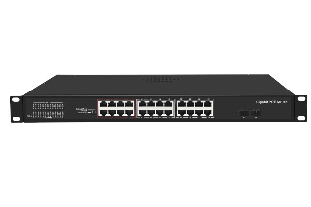 Дальность передачи по витой паредля РоЕ-портов 1 ~ 16 — до 100 м (до 100 Мбит/с, при cat.5e и выше) для РоЕ-портов 17 ~ 24 — до 250 м (до 10 Мбит/с, при cat.6 и выше)