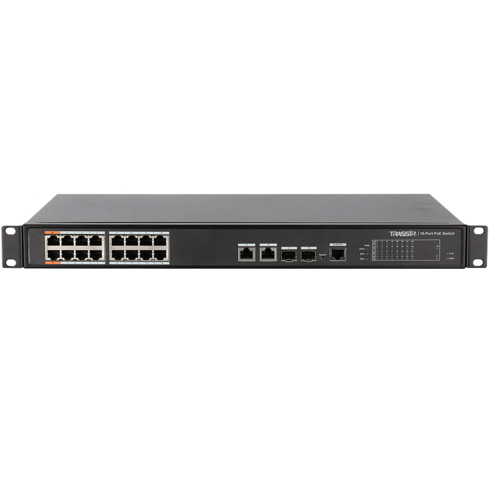 Управляемый PoE 16-портовый коммутатор TRASSIR TR-NS2218-240-16PoE с поддержкой Hi-PoE, до 250 м