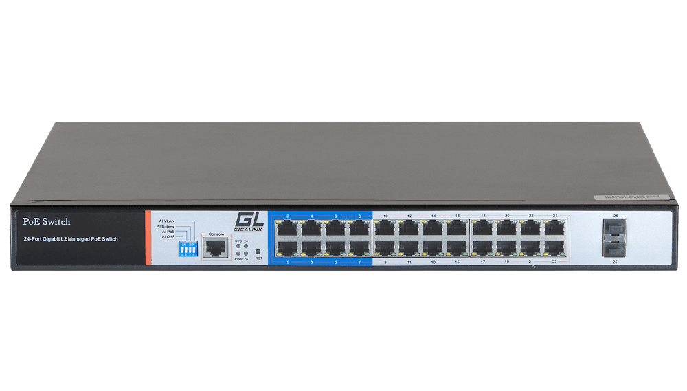 Режимыбазовый режим – свободная передача данных AI VLAN – разделение с 1 по 16 порт на отдельные VLAN AI Extend – питание по PoE до 250 метров AI PoE mode – Автоматическая перезагрузка устройств, при недоступности по команде ping AI QoS mode – приоритет видео данных