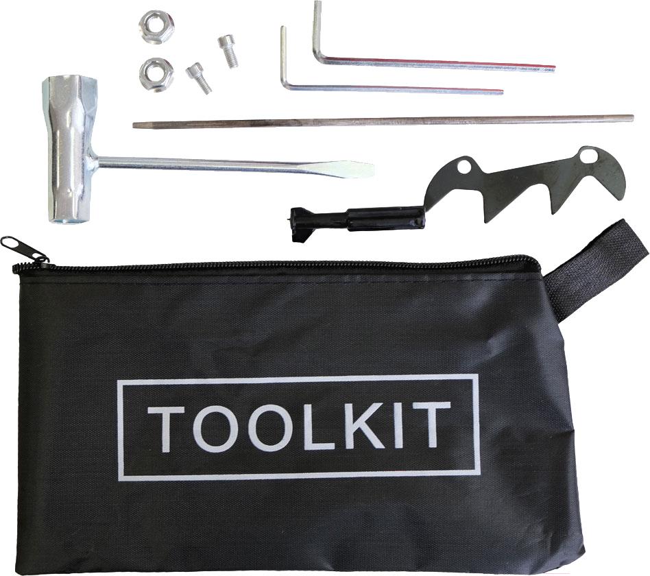 • В комплекте шина, цепь, защитный чехол, емкость для топлива, набор инструмента, зубчатый упор