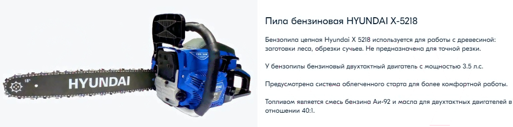Бензопила цепная Hyundai X-5218 / X5218HY