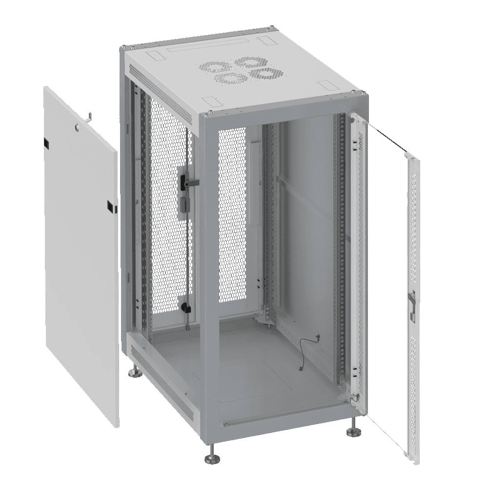 Высота 27 U Нагрузка 800 кг Полезная глубина 450 мм Передняя стеклянная дверь Задняя перфорированная дверь