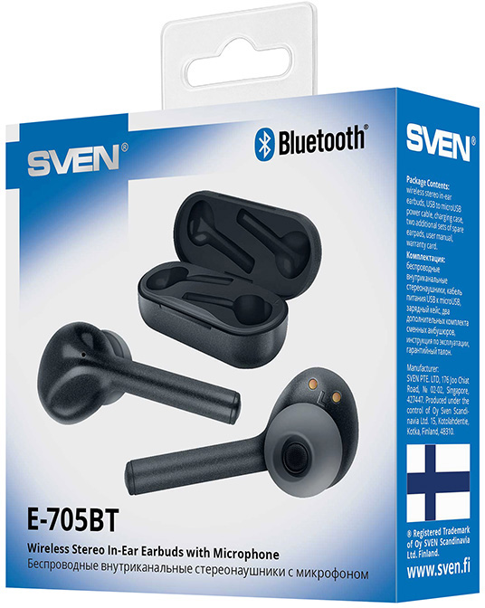 Беспроводные внутриканальные стереонаушники с микрофоном SVEN E-705BT, черный матовый (Bluetooth, TWS, магнитный зарядный кейс)