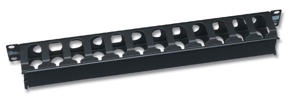 Горизонтальные органайзеры серии RWM высотой 1U выпускаются в одностороннем и двустороннем вариантах. Они вместительны, в них удобно укладывать кабель, защитные крышки можно снимать. Конструкция гребенок хорошо продумана; проложенные шнуры остаются внутри органайзера даже при снятых крышках. С тыльной стороны односторонних органайзеров RWM-1 можно использовать хомуты-липучки Siemon.