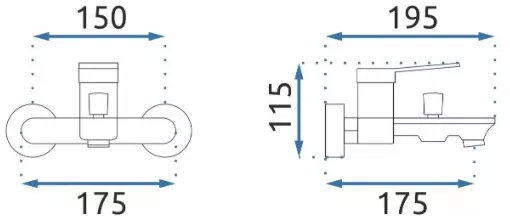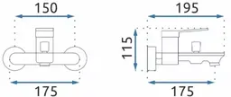 Смеситель для ванны/душа, однорычажный, запорный механизм: керамический картридж, излив: фиксированный, монтаж настенный, кол-во монтажных отверстий 2, материал корпуса: латунь.