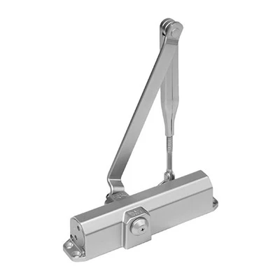 Гидравлический дверной доводчик с функцией фиксации двери в открытом положении (ФОП) и регулируемым усилием EN2 - EN4, цвет - серебро. Рычажная тяга в комплекте.