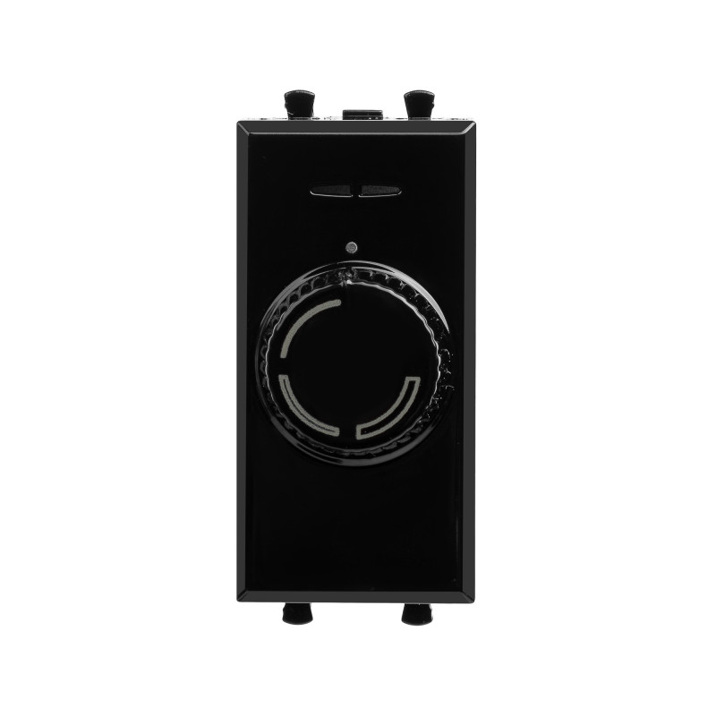Диммер поворотный модульный. Предназначен для монтажа в системы "In-liner Front" и "In-liner Aero" при помощи рамок-суппортов и каркасов "Avanti" (код 4400912 и т.д.). Назначение: управление освещением помещения; регулирование 60–800 Вт для ламп накаливания и галогенных ламп. Диаметр отверстий для ввода кабелей – 3 мм; винтовые зажимы; шаблон для зачистки кабеля – 11 мм; встроенная подсветка. Фиксация в подрозеточные коробки глубиной не менее 45 мм при помощи каркаса с лапками (код 4400802) и саморезов. 1 модуль. Цвет: "Черный квадрат".