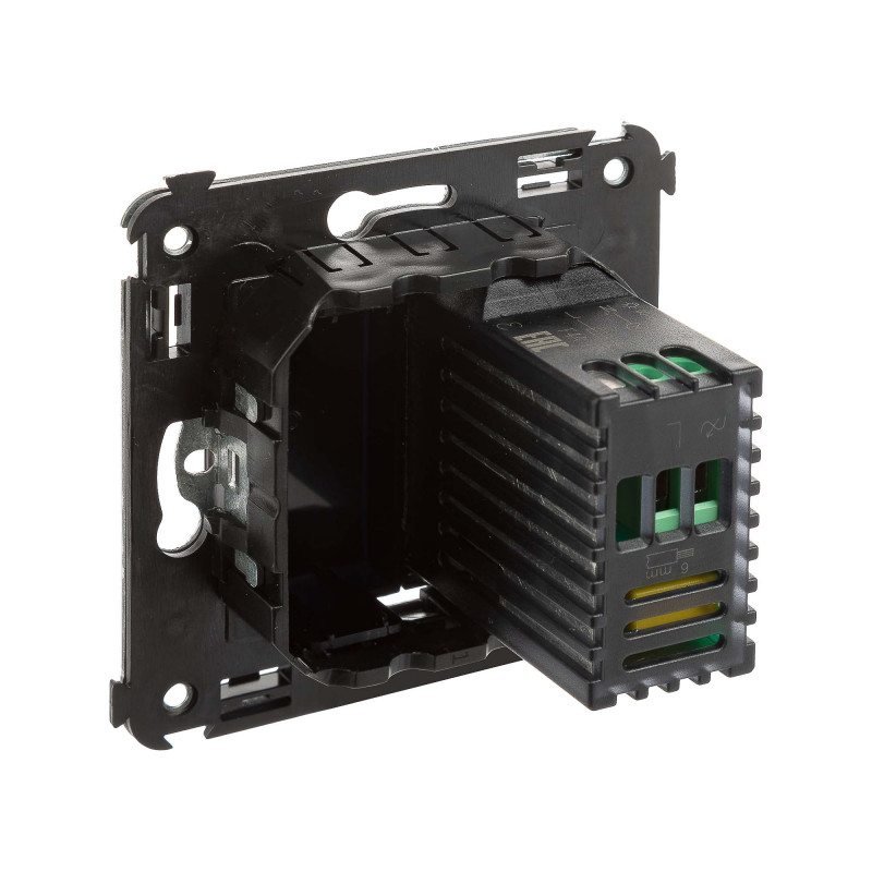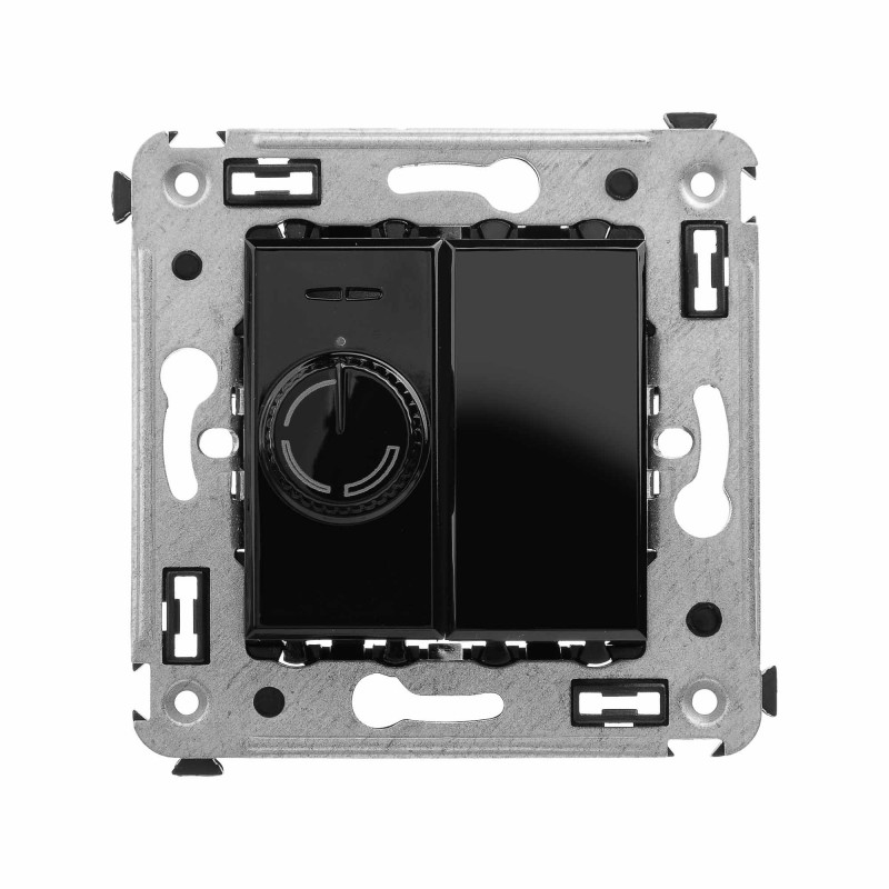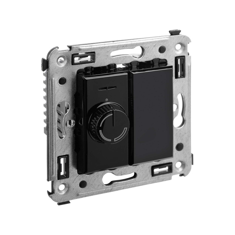Диммеры предназначены для управления контуром освещения и регулировки интенсивности освещения помещения. Поворотный диммер – это колесико, поворот которого позволяет менять яркость комнатного освещения. Диммеры от ДКС применяется для скрытой установки в стену. Цвет пластиковых частей устройства - "Черный квадрат", это глубокий загадочный оттенок, оттеняющий другие цвета и создающий в интерьере интригующие акценты.