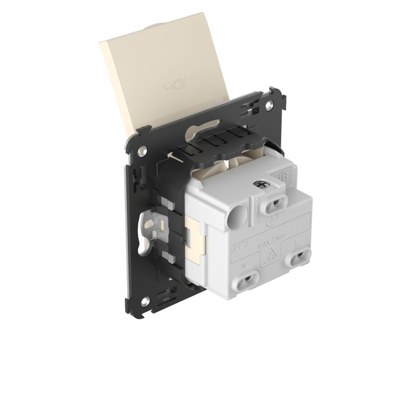 Розетка 2P+E с крышкой – это однофазная розетка с заземлением. Изделие предназначено для скрытого монтажа в стену и может применяться как в жилых, так и в коммерческих или производственных помещениях. Крышка защищает механизм от загрязнения и попадания влаги в то время, когда розетка не используется. Номинальное напряжение – 230 В, номинальный ток – 16 А. Материал: металл, термопласт. Пластиковые элементы устройства имеют нежный бежевый оттенок "Ванильная дымка", который отлично сочетается с интерьером в пастельных или насыщенных теплых тонах. Количество модулей – 2.
