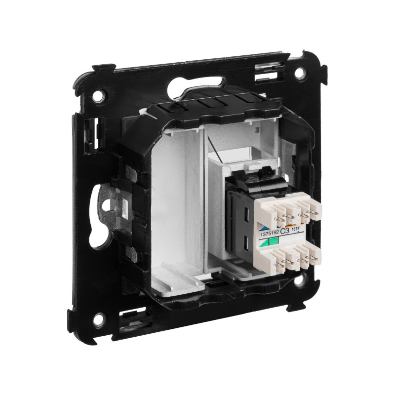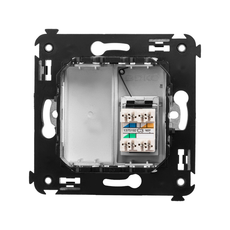 Телефонная розетка RJ-12 от ДКС устанавливается в стену (скрыто) и применяется для коммутации линий телефонной связи в патч-панелях или для связи телефонных аппаратов с розеткой. Материал – металл, термопласт. Пластиковые части имеют цвет оттенок "Закаленная сталь" – изысканный серебристый оттенок, имеющий приглушенный металлический блеск. Он сочетается с интерьерами, выдержанными в холодной цветовой гамме и отлично вписывается в стилистику дизайна "high-tech".
