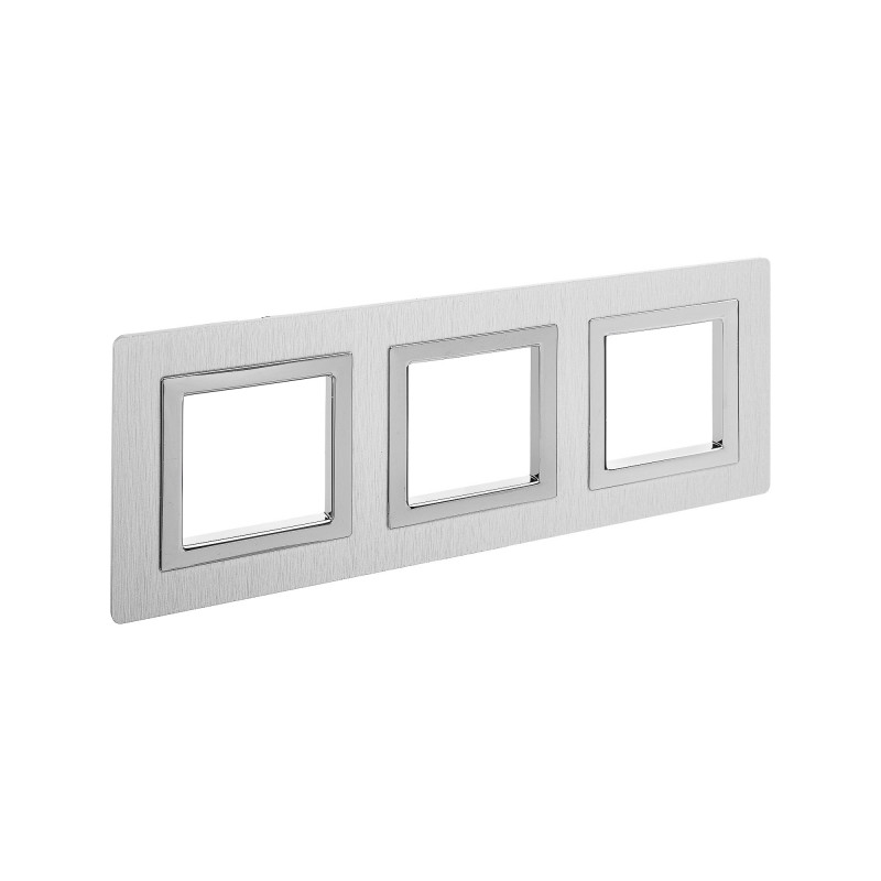 Светлая рамка из алюминия для настенного монтажа. Назначение: декоративное оформление серии "Avanti"; монтаж в стену на каркас ЭУИ "Avanti" (код 4400802). Дизайн разработан B. Dall’Ecco. Материал – алюминий. Фактура – браш. Кол-во модулей: 4