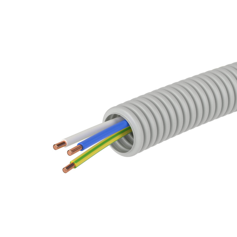 DKC / ДКС 9P91650 Труба гибкая гофрированная номинальный ф16мм ПВХ-пластикат в комплекте с кабелем ПВ-1(ПуВ) 3х15 ГОСТ