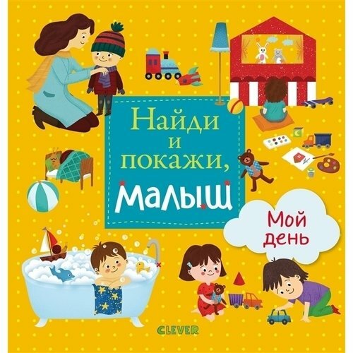 - Аннотация Книга «Найди и покажи, малыш. Мой день» — это 11 разворотов с панорамными картинками, которые в игровой форме познакомят ребенка с режимом дня. Обсудите с малышом, как он просыпается и что ему снилось, как он чистит зубки и умывается в ванной, что ест на завтрак, как одевается и что любит делать на детской площадке, а также другие события его дня.