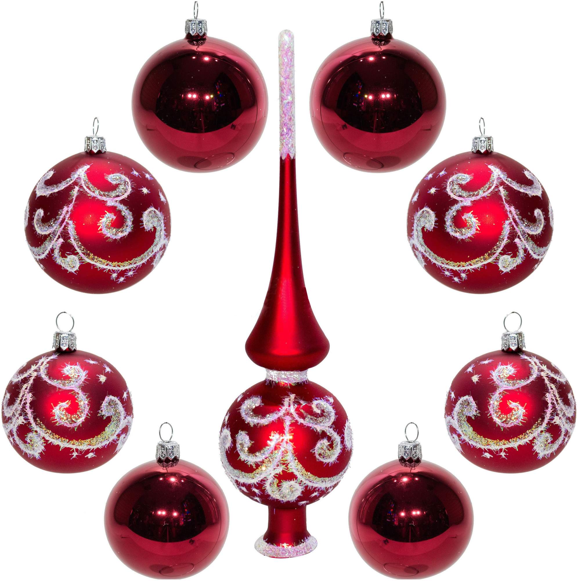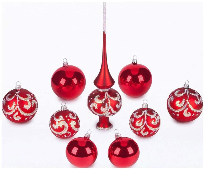 - Состав набора елочная верхушка; шар 60 мм - 4 шт., шар 75 мм - 4 шт.