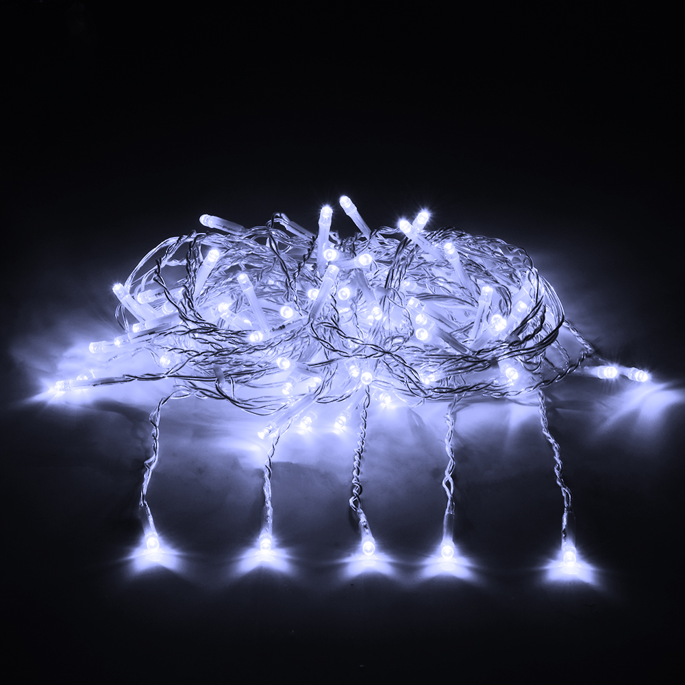 Размер гирлянды 1,5х1,5 м, длина провода 3 м, количество светодиодов 156. Цвет свечения холодный, цвет провода прозрачный. Степень защиты IP 20. Мощность 9 W. Гирлянда имеет контроллер (8 режимов работы). Использовать при комнатной температуре. Срок службы 25 000 часов.