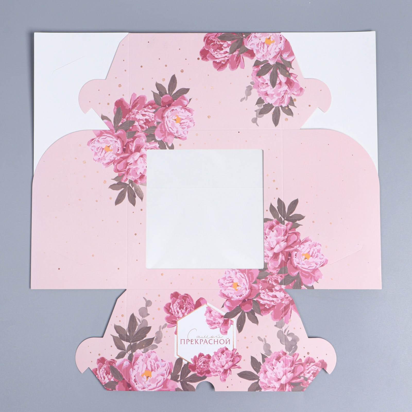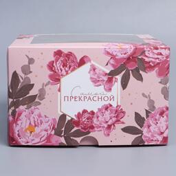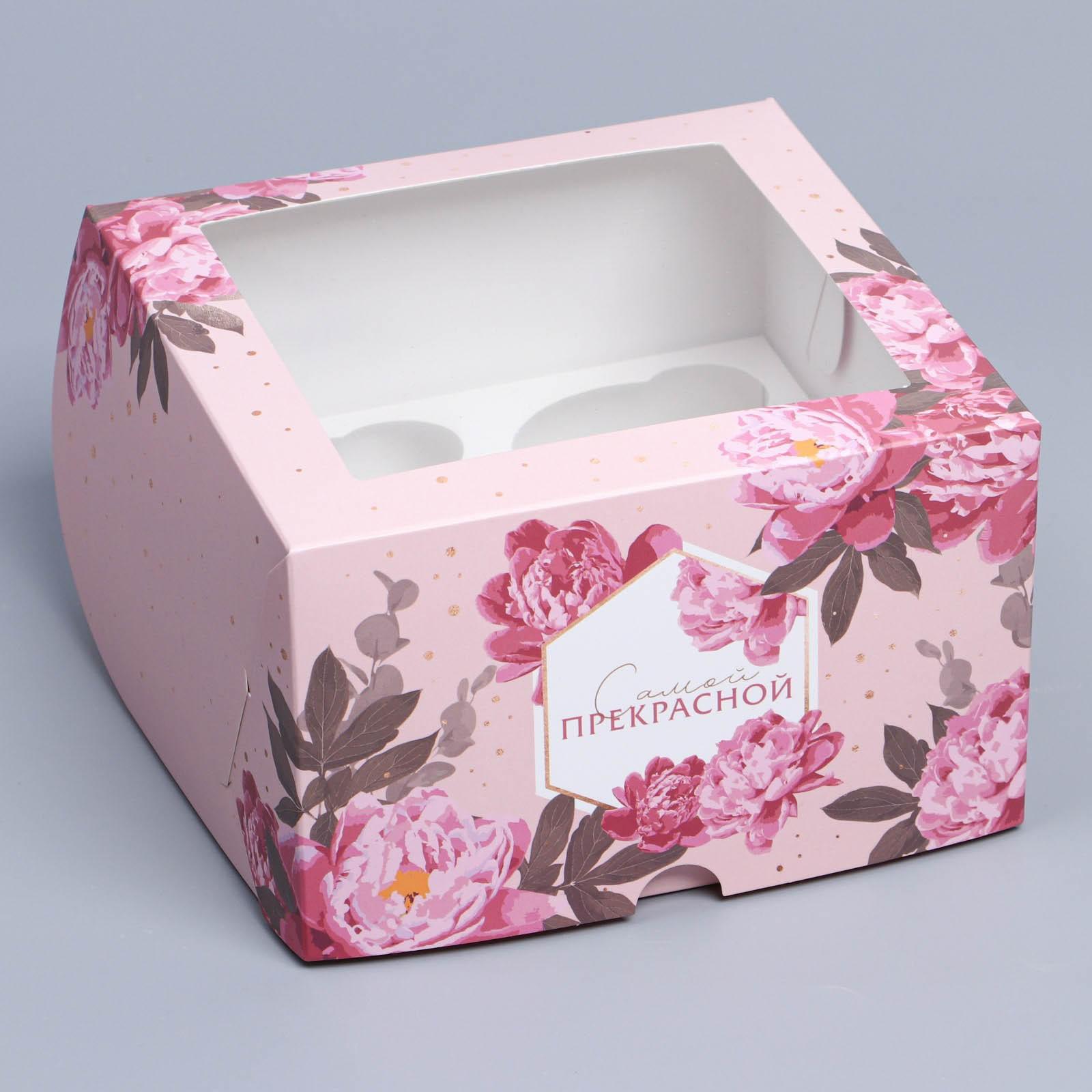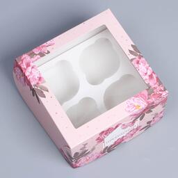 Коробка складная на 4 капкейка с окном «Цветы», 16 х 16 х 10 см 9086089