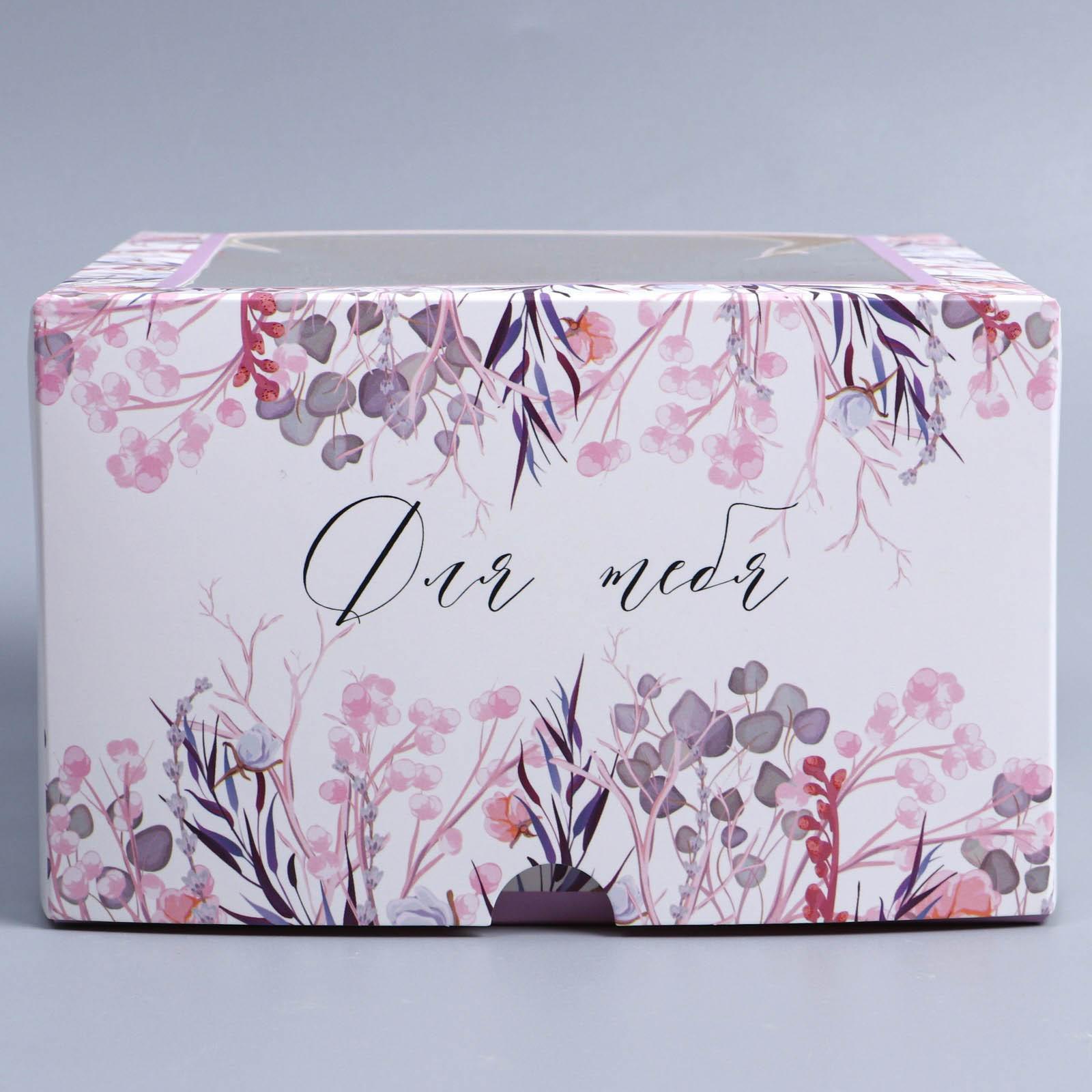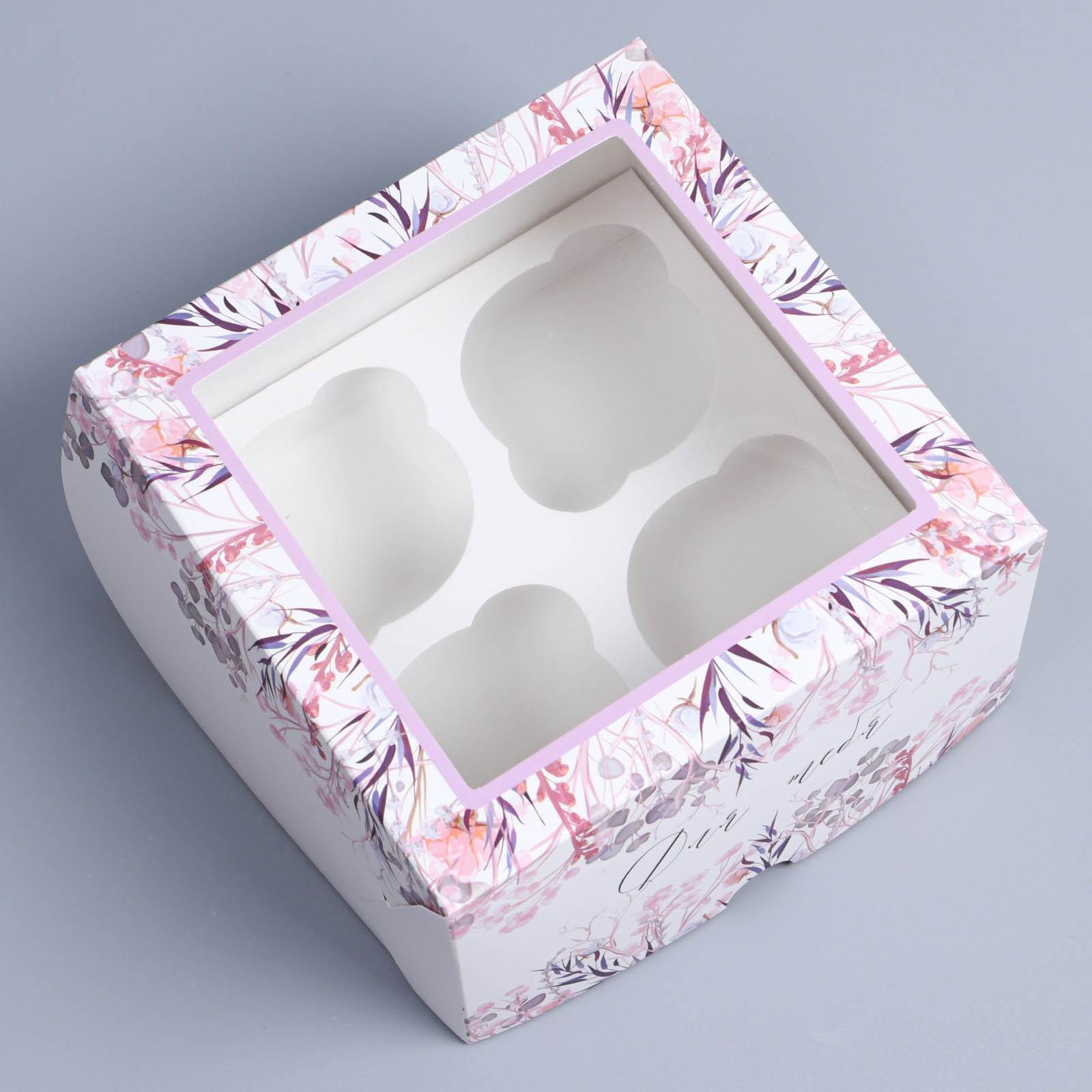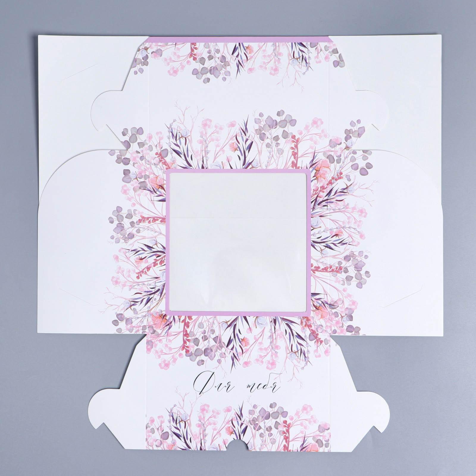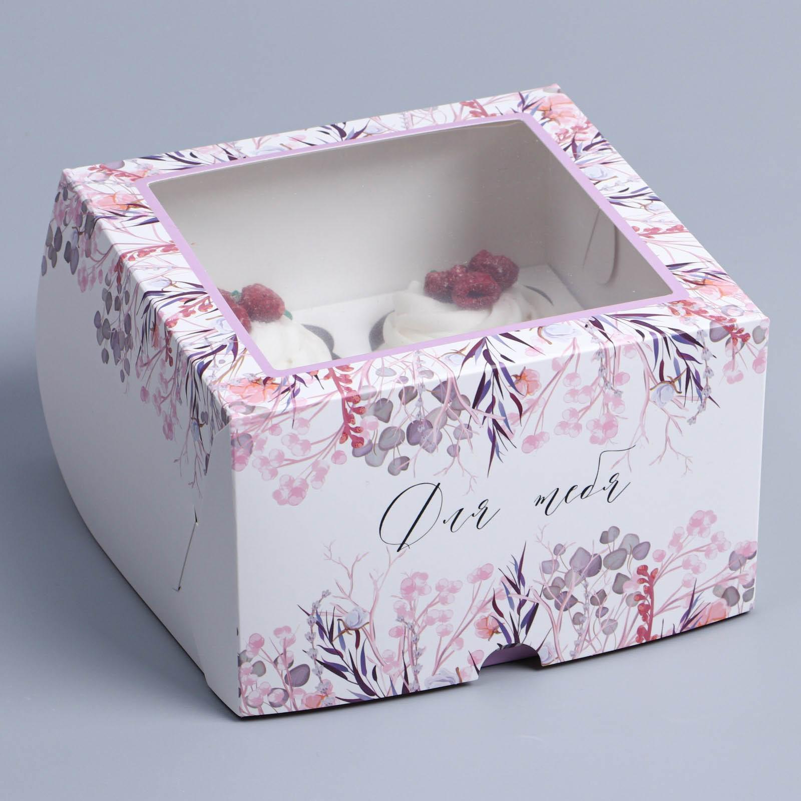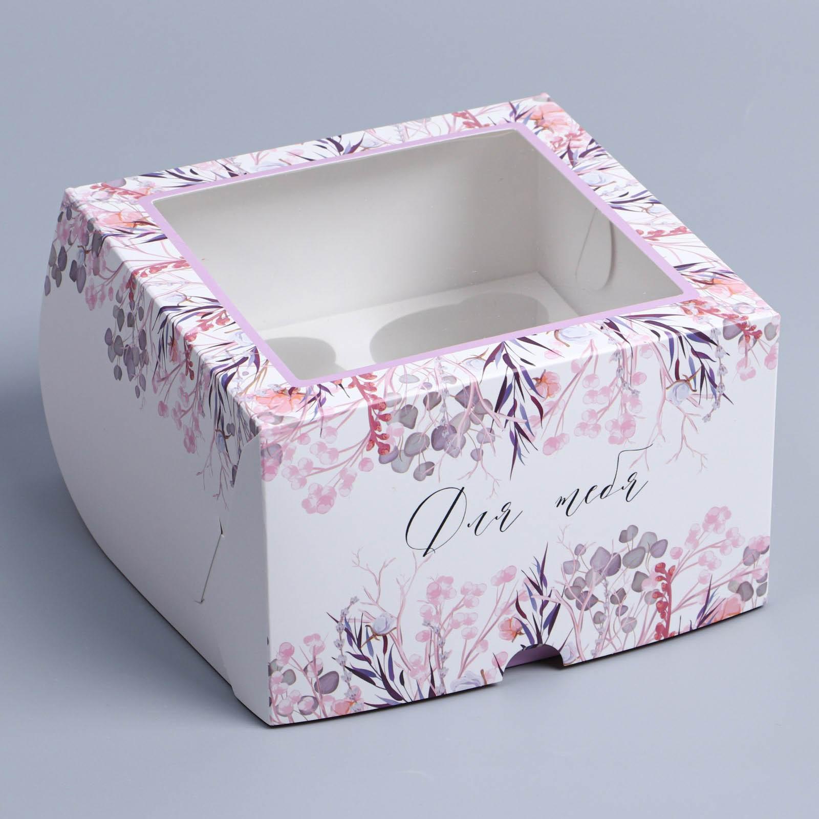 Коробка складная на 4 капкейка с окном «Венок», 16 х 16 х 10 см 9086094