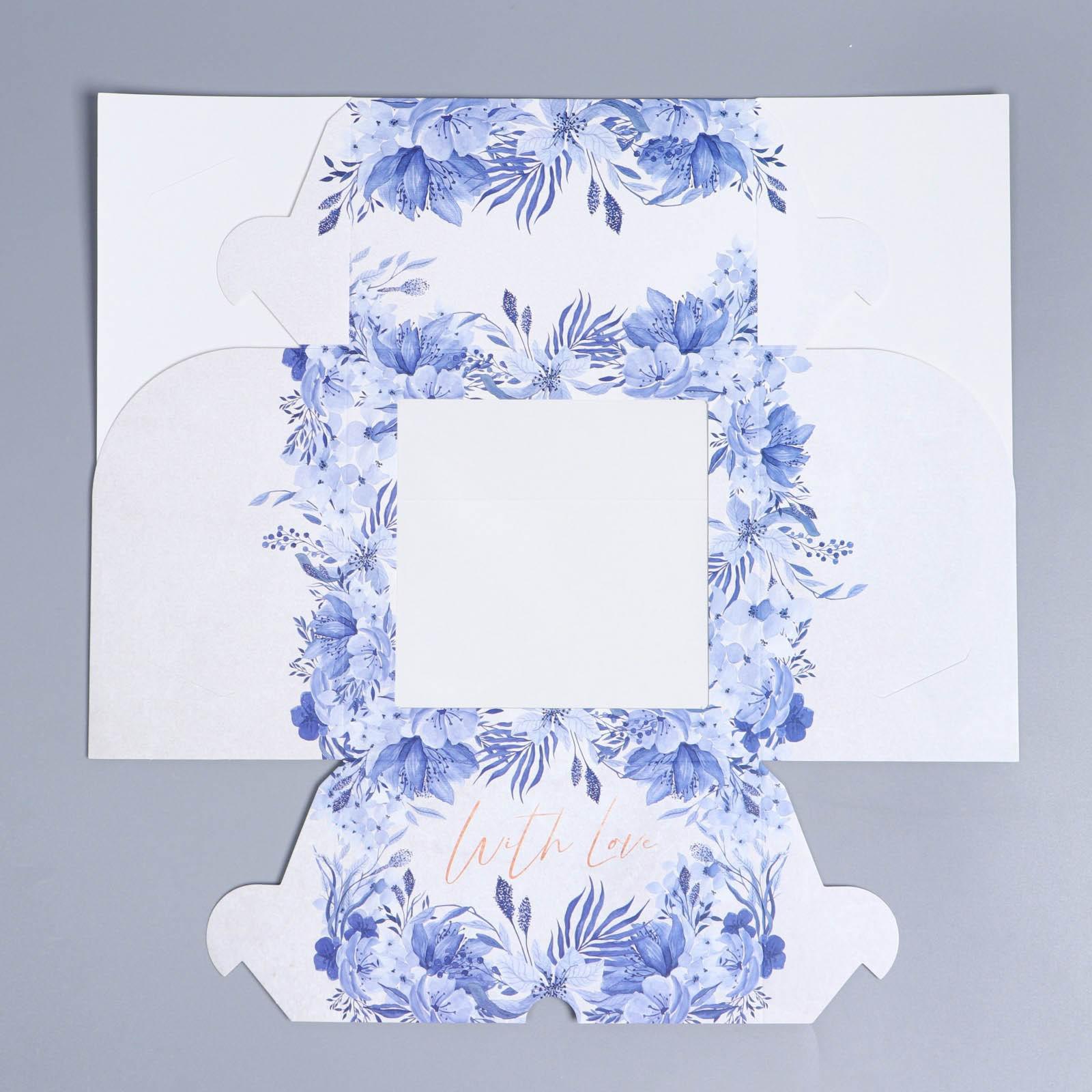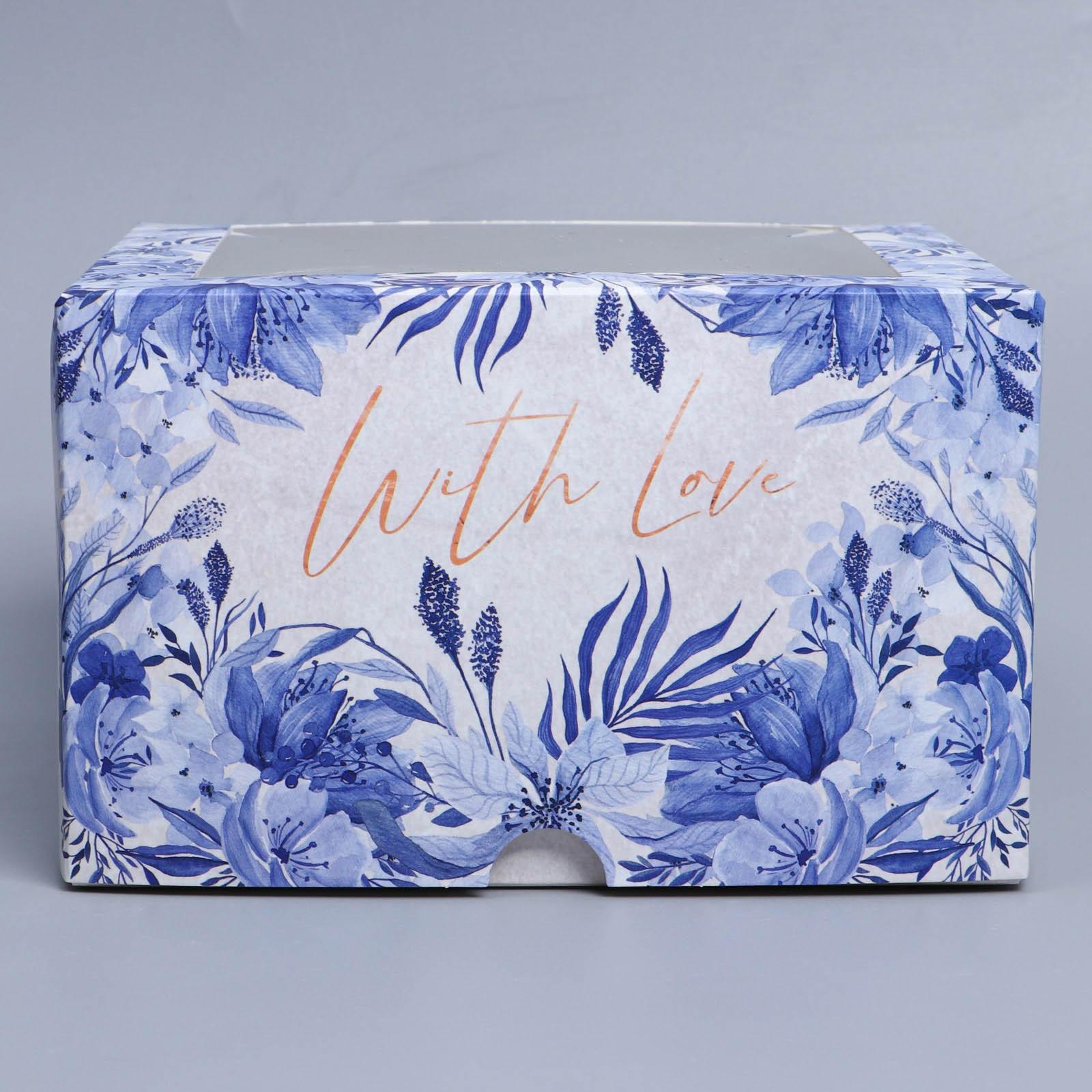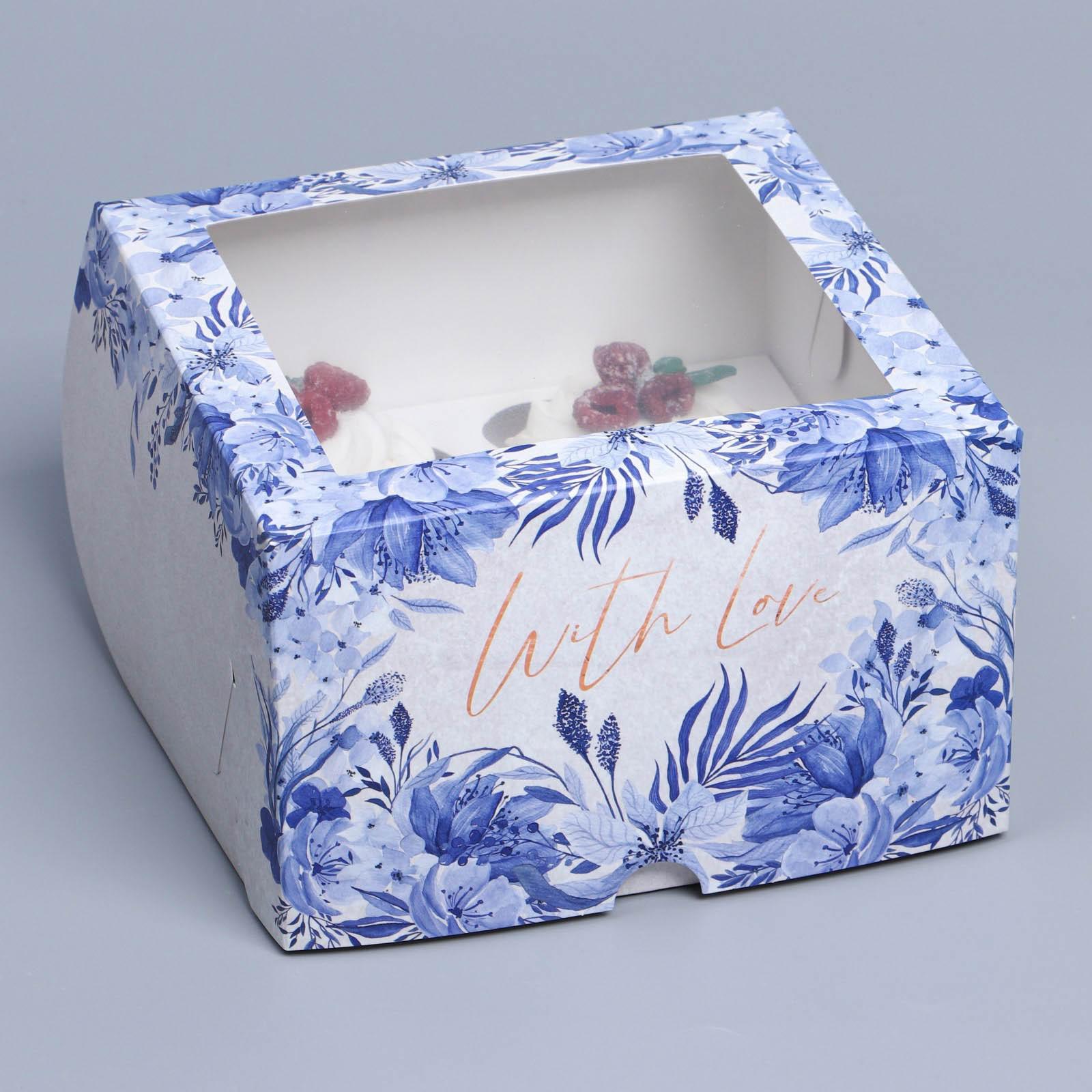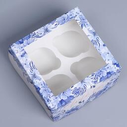 Коробка складная на 4 капкейка с окном «Синие цветы», 16 х 16 х 10 см 9086088