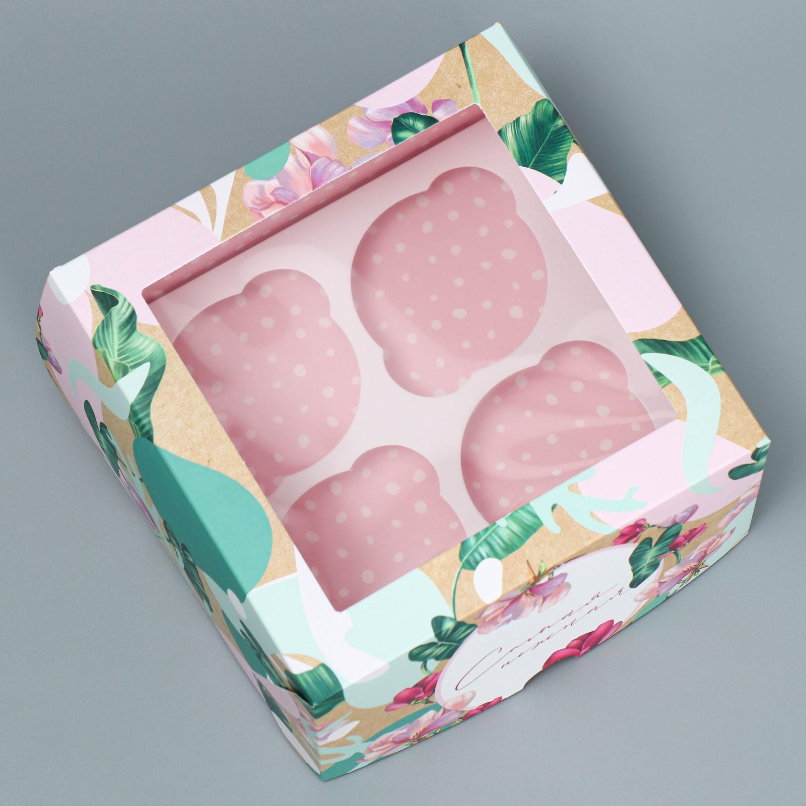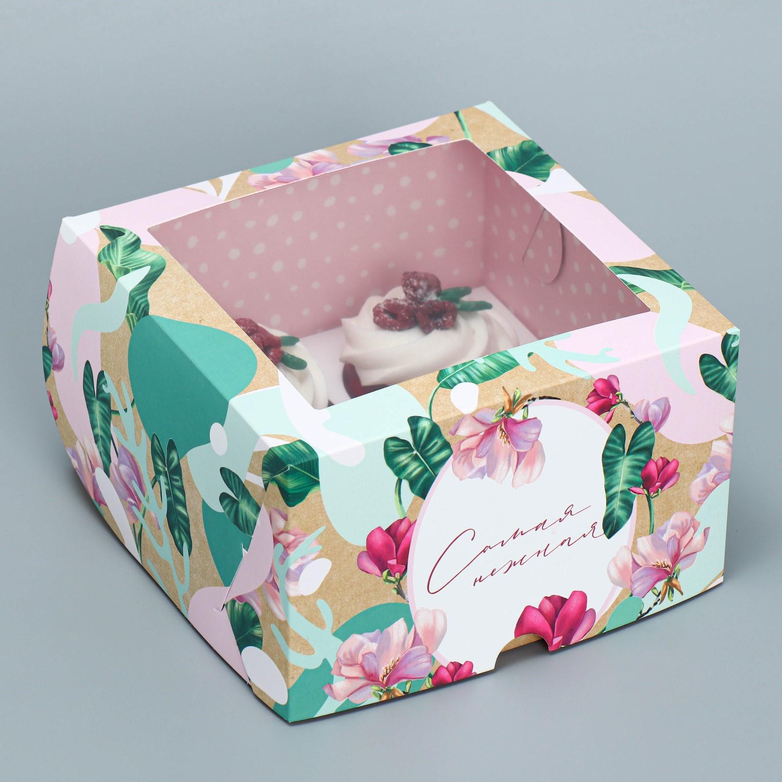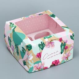 Коробка для капкейков складная с двусторонним нанесением «Самая нежная», 16 х 16 х 10 см 7361167