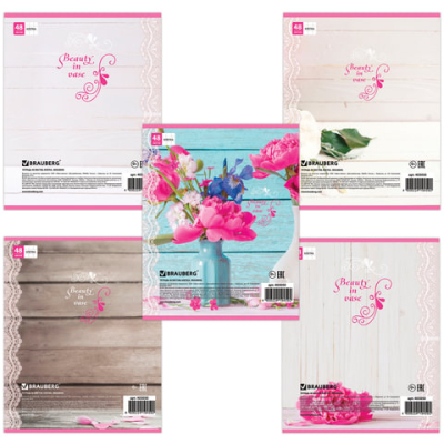 Тетрадь А5, 48 л., BRAUBERG, клетка, блестки, ПРЕКРАСНЫЕ ЦВЕТЫ, 403050